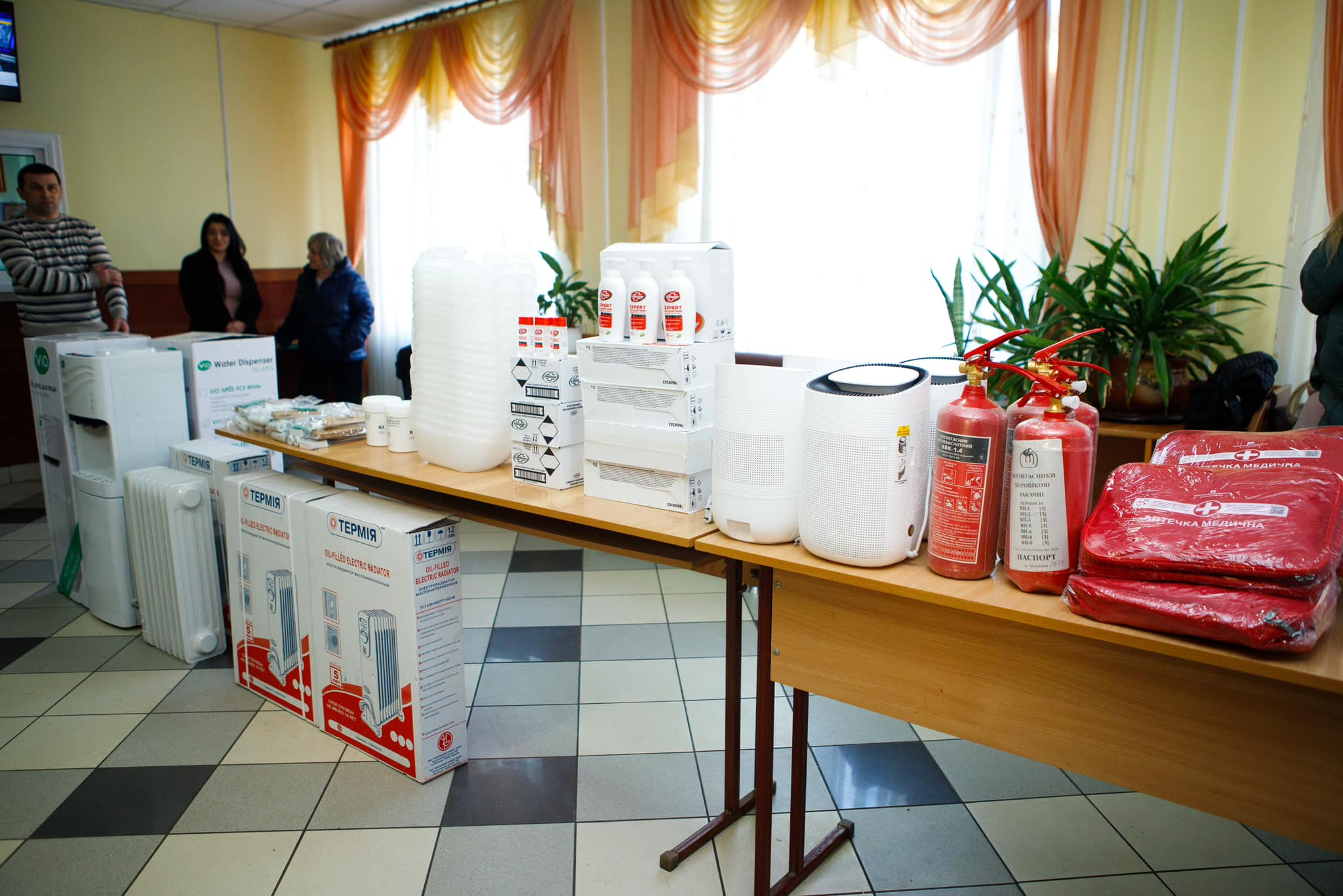 • опорні школи та заклади, де навчається велика кількість дітей, а також громадам, які обмежені у фінансовому ресурсі, надали різноманітну техніку (обігрівачі, осушувачі повітря тощо), кулери для води та різні ємності, меблі, аптечки й вогнегасники.