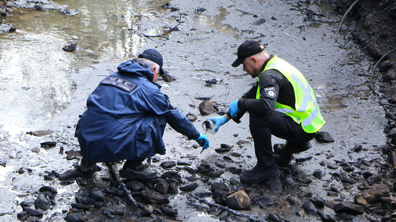 Фрагмент металевого, пошкодженого трубопроводу вилучили та направили на подальше дослідження. Поліцейські встановлюють причину його руйнації. Наразі правоохоронці з'ясовують також обставини займання нафтопродуктів у водоймі. Для цього з місця події вилучено зразки продуктів горіння.
