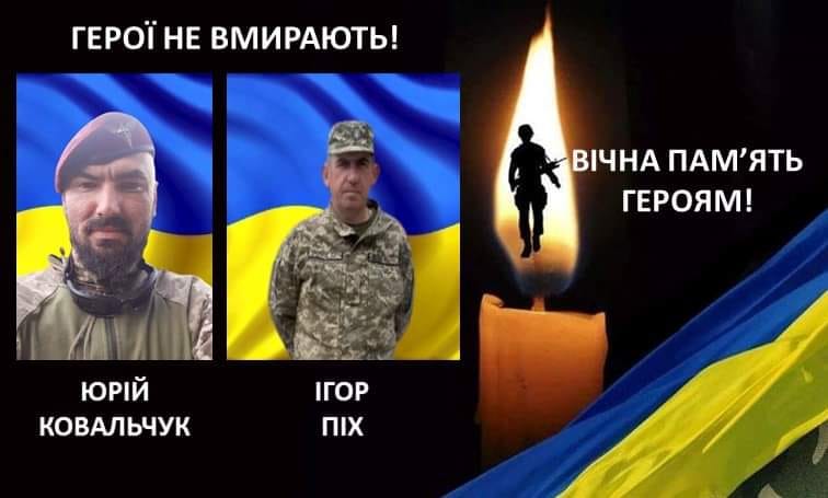 Від нас йдуть найкращі! Щира вдячність та безмежна шана полеглим за Батьківщину Ігореві Піху та Юрію Ковальчуку», — йдеться у повідомленні.