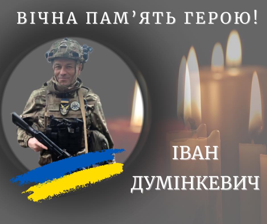«Висловлюємо щирі співчуття рідним і близьким полеглого Захисника. Вічна пам’ять і слава Герою — Івану Думінкевичу», — йдеться у дописі.