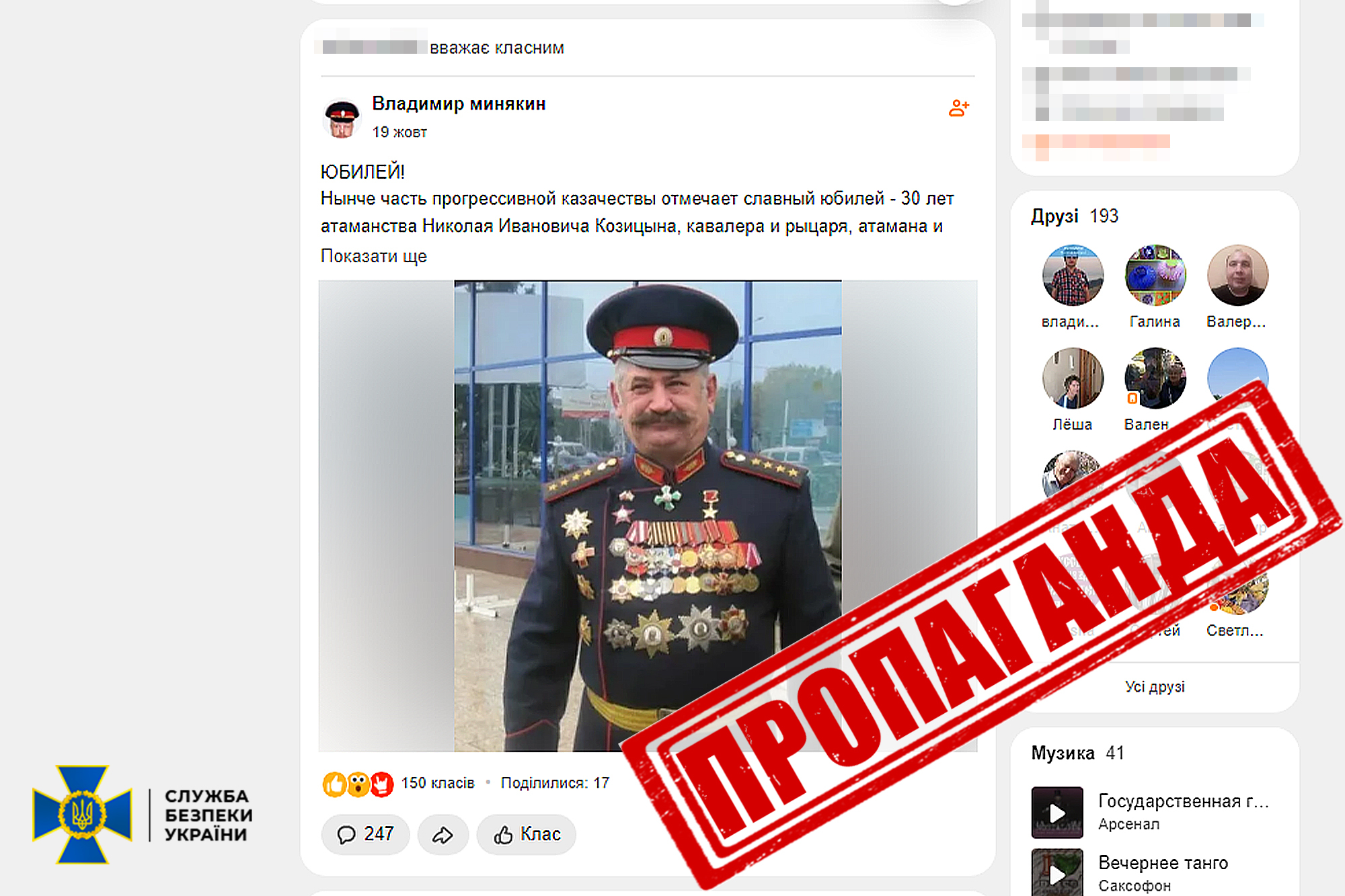 У забороненій соцмережі фігурант був учасником груп «Электричка до ссср», «Наша отчизна ссср» тощо, звідки поширював інформацію, а також репостив антиукраїнські публікації від російських блогерів-пропагандистів.