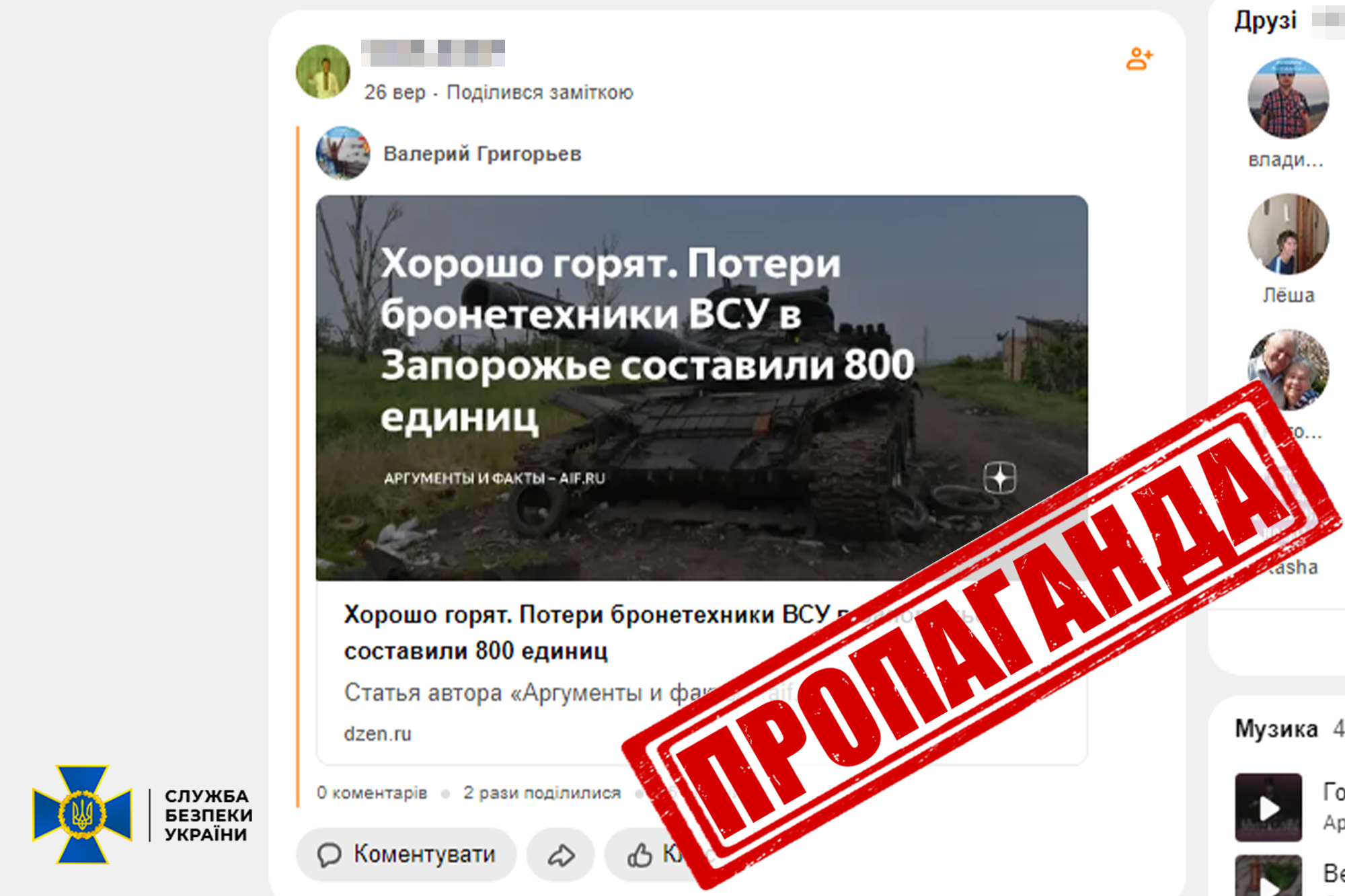 Через анонімний профіль чоловік ділився численними відеороликами та публікаціями російської пропаганди, повідомляє СБУ області, передає Фіртка.