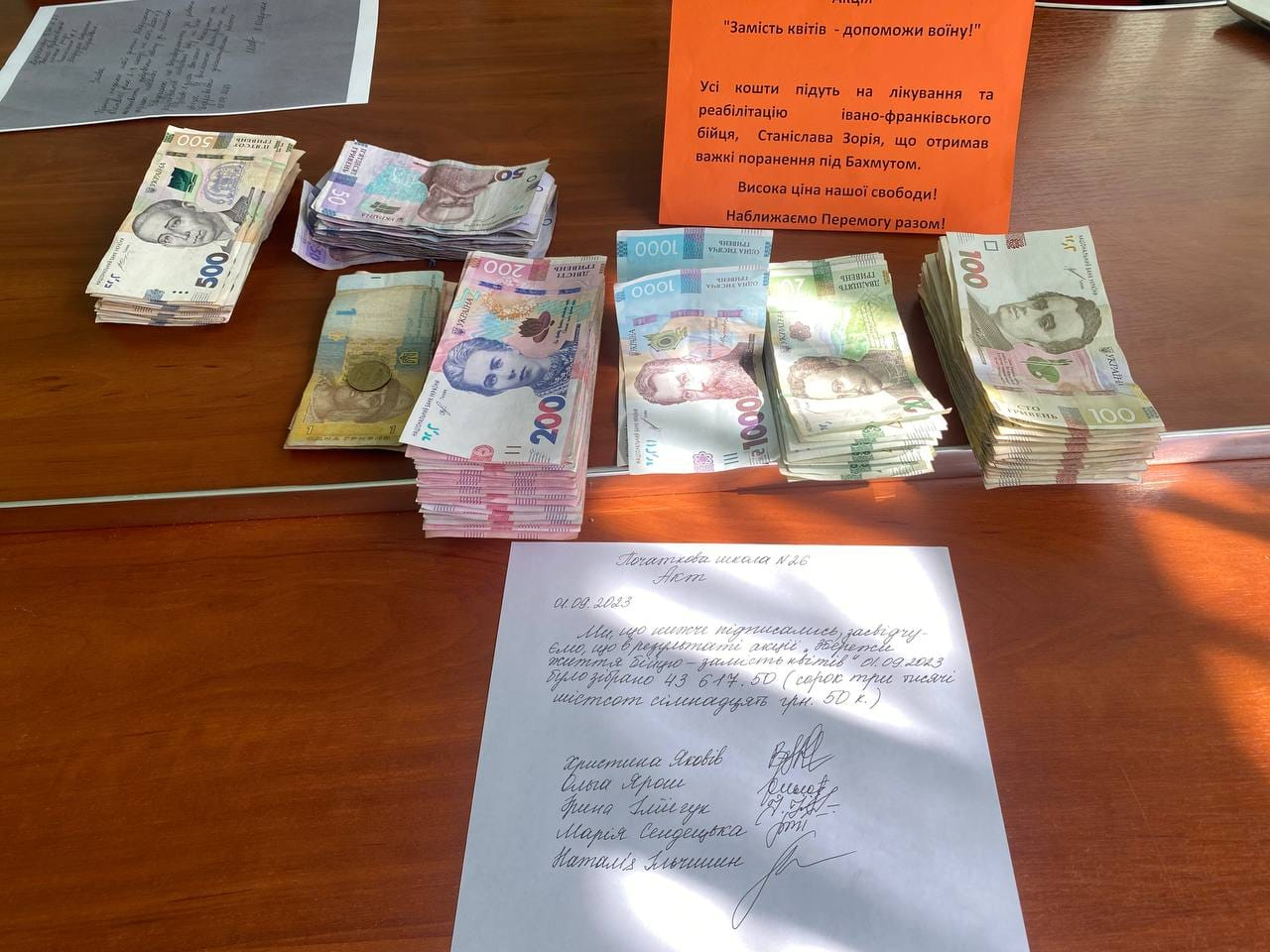 "Наша школа вже традиційно провела акцію «Збережи життя бійцю - замість квітів». Завдяки цьому зібрано 43 тисячі 617 гривень 50 копійок!