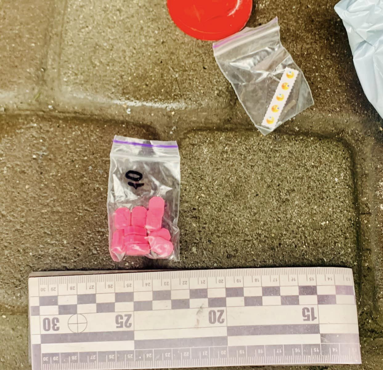 Під час проведення поверхневої перевірки було виявлено та вилучено упаковку з-під побутової хімії. В ній було приховано поліетиленовий зіп-пакет із вмістом 10 таблеток психотропної речовини «MDMA» та поліетиленовий зіп-пакет з вмістом 5 марок з психотропною речовиною «LSD».