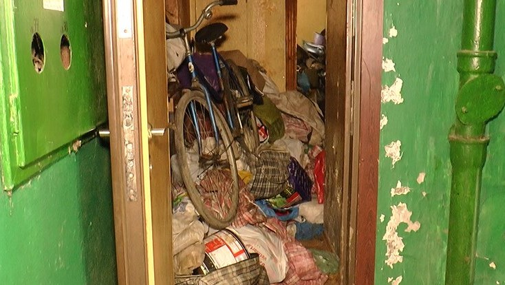 "Це запах, миші, грибок. Ми вже зверталися до нього, просили: "Викидай! Виноси все на сміття". Він не дуже хотів. Каже, що все це йому потрібно. Я не знаю, що ми маємо з цим робити. Ми викликали поліцію, жінка його з’явилася, якої тут не було. Але нічого не можуть зробити", – каже жінка.