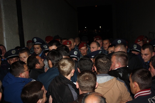 Відбулася штовханина правоохоронців з тими, хто намагався визволити заблокованих осіб.