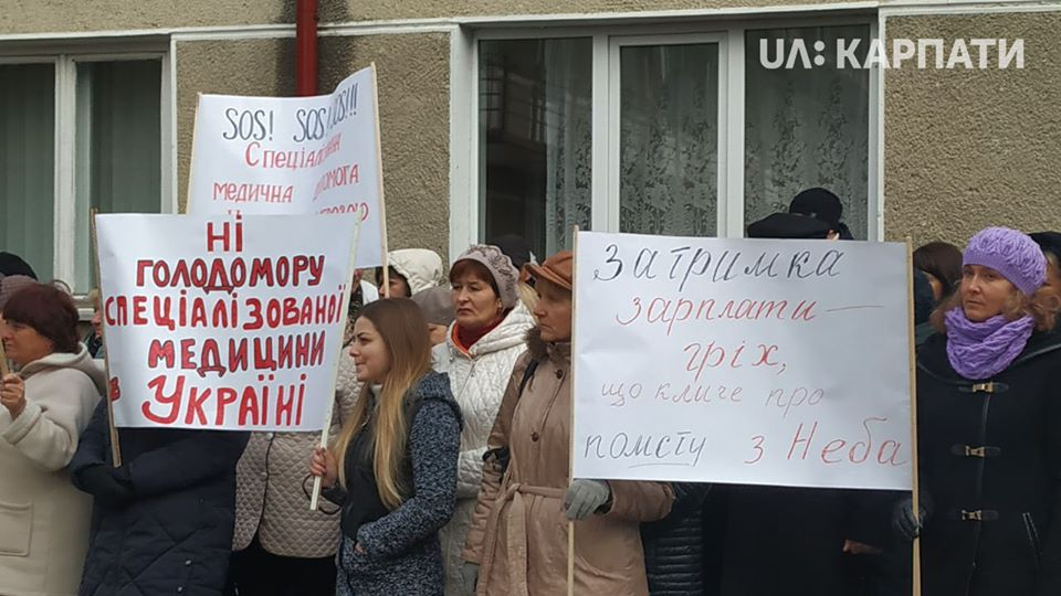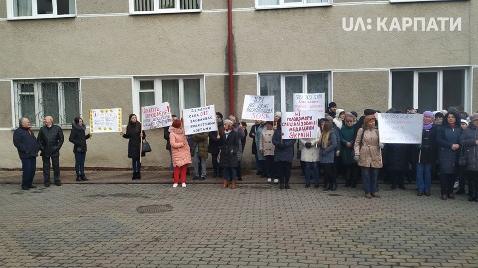 Працівники Надвірнянської центральної районної лікарні вийшли на протест.