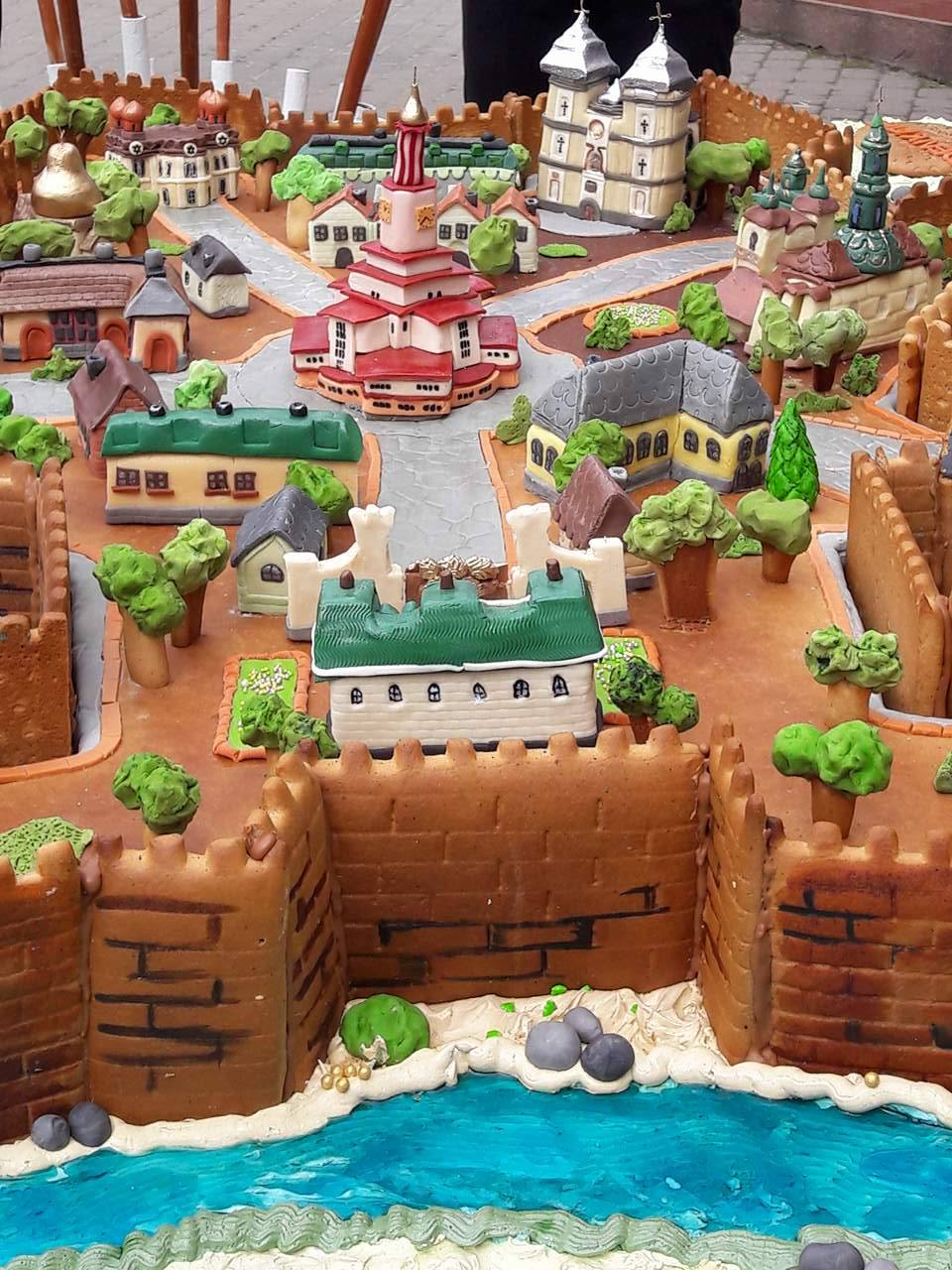 Бастіонні мури міста майстерно виготовлені з медово-пряничного тіста, а Ратуша, Собор Воскресіння, Вірменська церква і старовинні будиночки - з марципанової маси та їстівної позолоти.