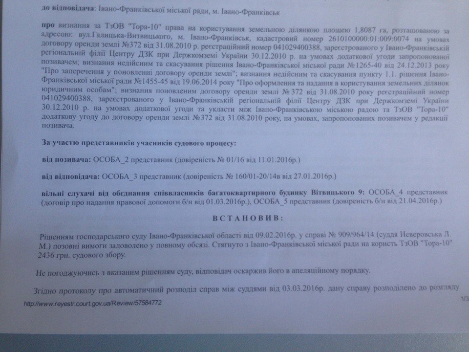 Завтра, 9 червня відбудеться судове засідання у Львівському апеляційному суду за позовом ТОВ «Тора-10» до міської ради м. Івано-Франківська щодо спірної земельної ділянки в мікрорайоні Пасічна в межах вулиць Галицька-Витвицького.