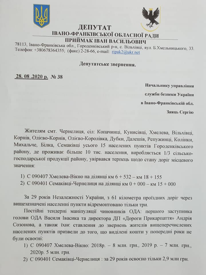 Про це на своїй сторінці у Фейсбук повідомив депутат обласної ради Іван Приймак, пише Фіртка.
