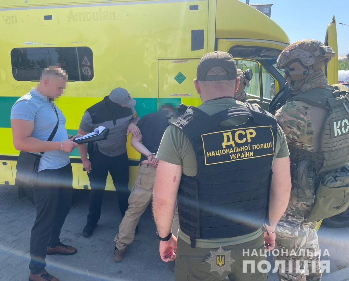 Так, 25 серпня оперативники та слідчі за силової підтримки спецпризначенців КОРД затримали організатора та одного з учасників злочинної групи під час продажу автомобіля «швидкої» за 6 000 євро та 1 200 доларів США.