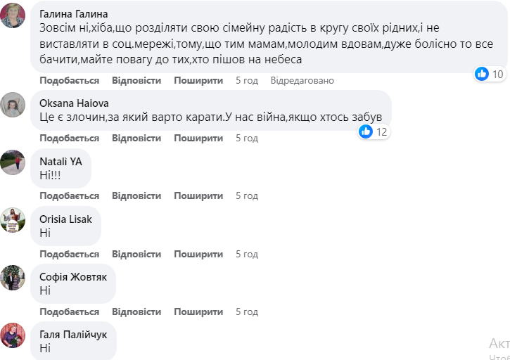 "Тим більше, хто скаже, скільки іще триватиме війна? Тому сам факт бенкетів — річ закономірна. Але людям варто б робити ті забави більш поміркованими: без надмірних розкошів, показухи, марнотратства.Я не маю звички рахувати чужі гроші, але думаю, що "весілля на мільйон" сьогодні — це і неетично і нераціонально.Взагалі, будьмо відверті, демонстративна пишна забава — це щось російське в стилі "купеческая гулянь". Не по-європейському це — ось такий аргумент для тих, кого війна як чинник не "тригерить", - переконаний військовий.