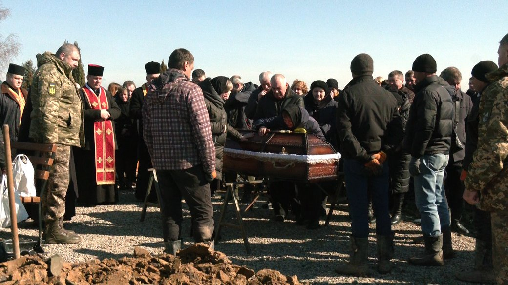 Під залпи пострілів та гімн України бійця поховали на Алеї героїв у Чукалівці.