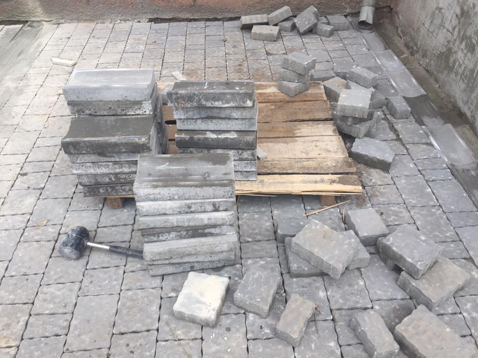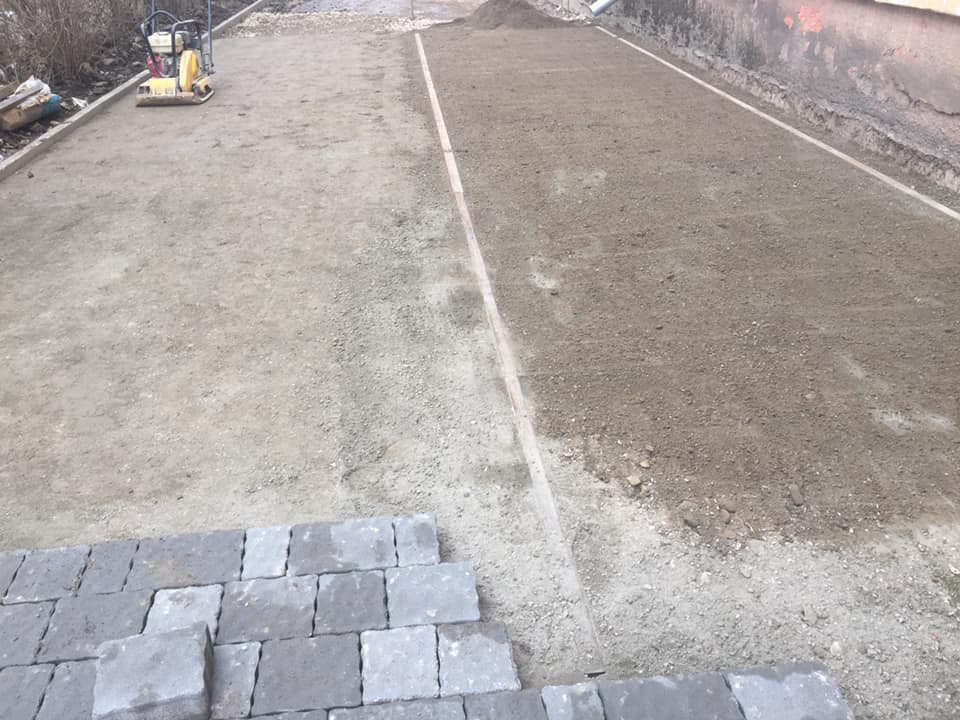 З’єднання бульварів: робітники почали викладати пішохідний тротуар з бруківки (ФОТО)
