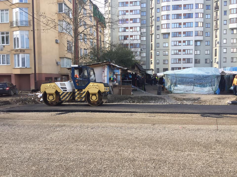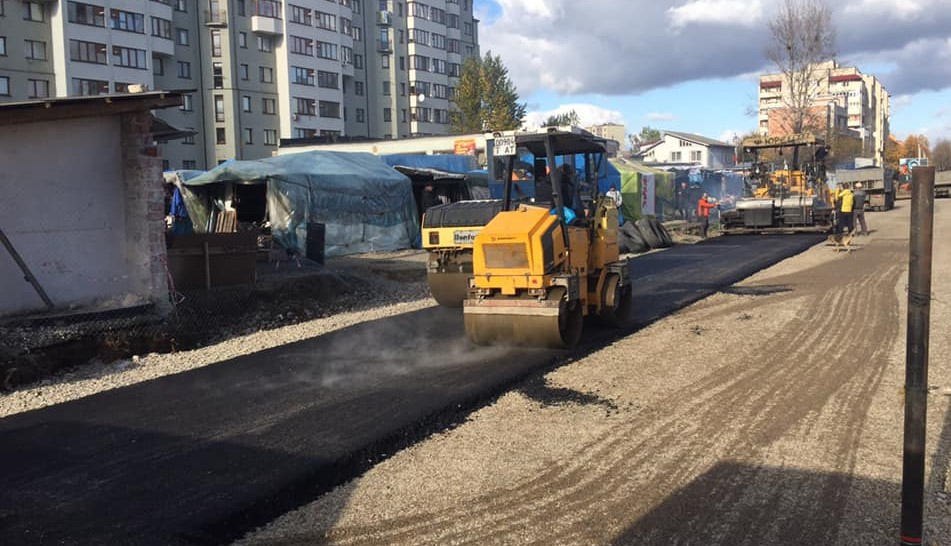 Будівельники почали асфальтувати ділянку майбутнього дорожнього полотна зі сторони вулиці Бельведерської. Поки це нижній шар асфальту.