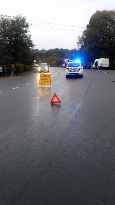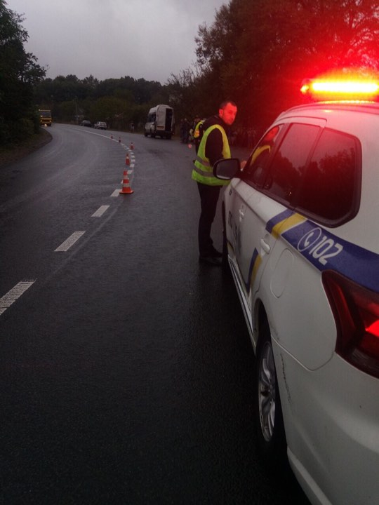 Правоохоронці встановлюють і розшукують водія фури. Слідчі працюють на місці події.