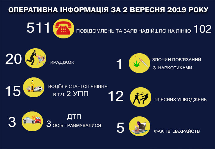 Впродовж минулої доби, 2 вересня, в Івано-Франківській області на "лінію 102" надійшло 511 повідомлень.