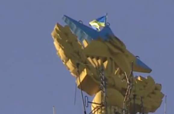 За його словами, прапор зняли в 10:05 (9:05 за Києвом). Таким чином, прапор України провисів на висотці близько трьох годин.