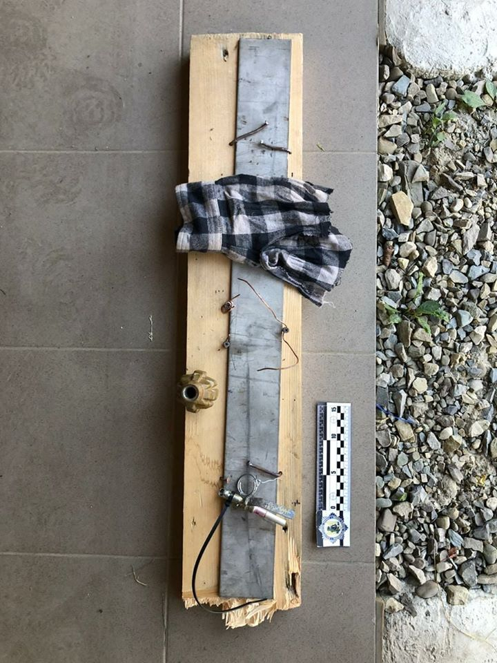 На місце події негайно виїхала слідчо-оперативна група, яка встановила, що вночі з 9 на 10 серпня невідома особа встановила перед гаражем так звану «розтяжку». Йдеться про гранату типу «Ф-1», яка повинна була вибухнути під час відкриття гаражних ролетів, але при відкритті вибуховий пристрій не здетонував.