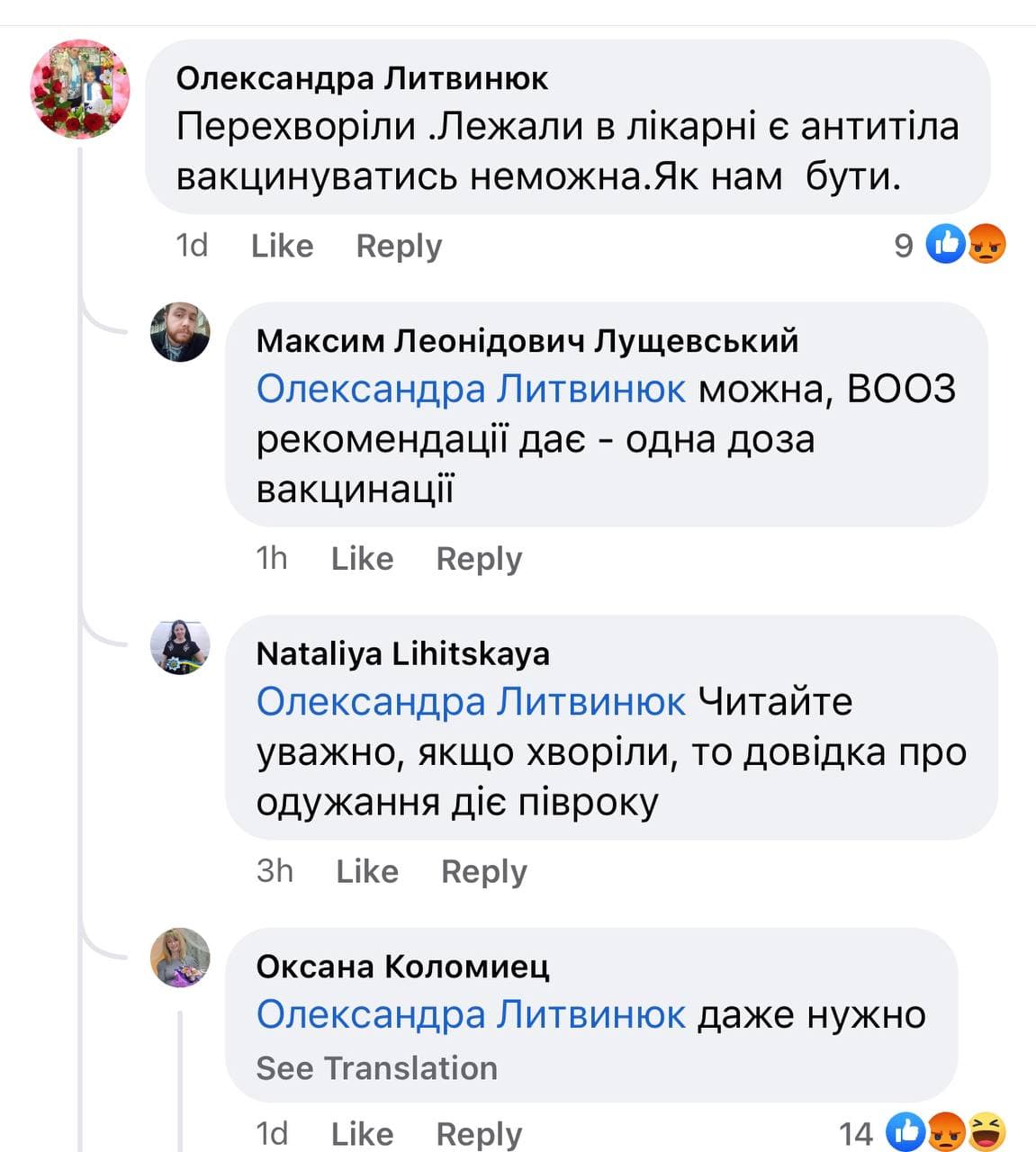 - документа, що підтверджує отримання повного курсу вакцинації або документа, що підтверджує отримання однієї дози дводозної вакцини для регіонів «жовтого» рівня епідемічної небезпеки;