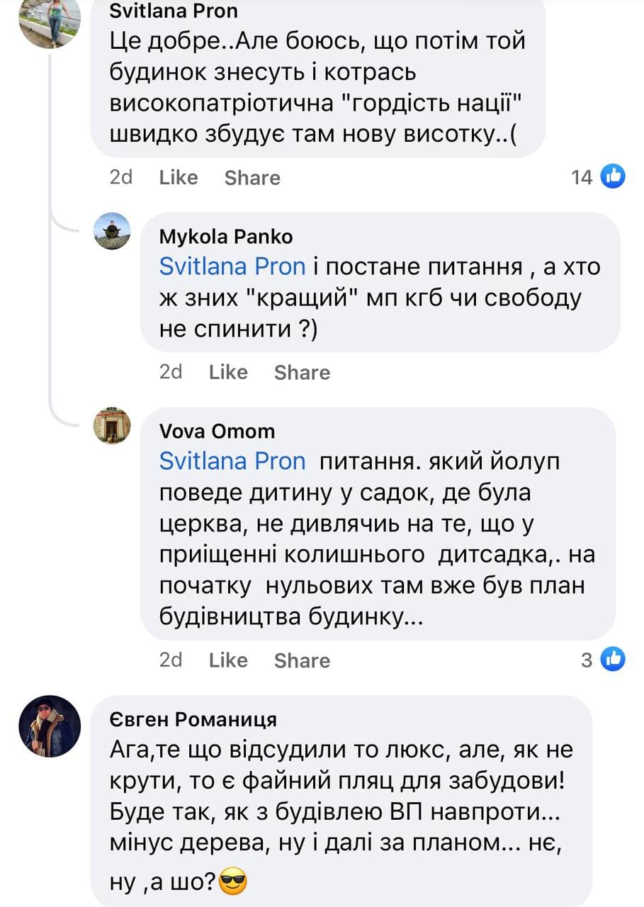 Франківці цю новину сприйняли позитивно. Проте, чимало цікавить, чи, справді, замість церкви з'явиться дитячий садок, а не чергова новобудова.