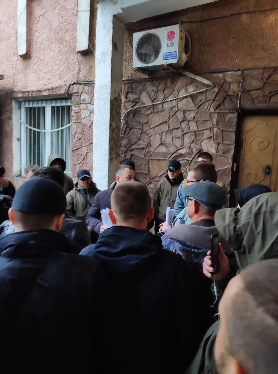 До Центрального ринку на вулиці Дністровський прибула поліція, Ігор Халаменда та присутні представники нових власників. Триває суперечка. Ігоря Халаменду не впускають у приміщення. Кричать "Бура геть!", "Ганьба!", "Банду геть!"