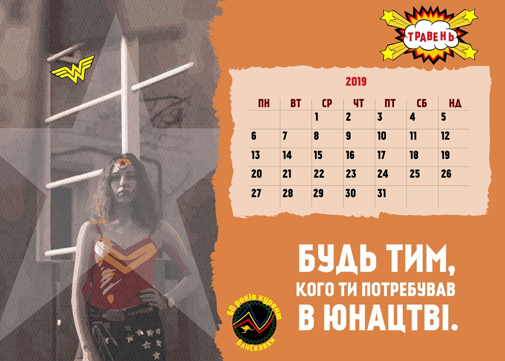 Дизайном календаря зголосилася займатися пластунка Наталя Вдовиченко. Кожна з учасниць проекту самостійно обирала тему і визначала тезу-заклик для аудиторії. Армія - стала темою для січня. На сторінці календаря зображена пластунка Ірина Вітенко, чоловік якої був військовим, а сама жінка активно допомагає Збройним Силам. В лютому сторінка календаря розповіла про Катерину Смірнову, яка прихистила собаку із притулку; у березні Віта Дідик  наголосила на потребі берегти природу, мислити глобально і діяти локально; квітень продемонструвала Іра Бігун, яка разом зі своїми батьками часто допомагає діткам, що живуть в сиротинцях. Блискавкою травня стала Ярина Прошак, яка з подругами, випускницями Української академії лідерства створили Girls Leadership Camp, де протягом 10 днів організовували для дівчат-підлітків з різних міст України лекції з успішними людьми, в яких йшлося про самореалізацію, проектний менеджмент, фемінізм, відповідальність. З червня роботу над календарем куруватиме пластунка Оля Келавець.