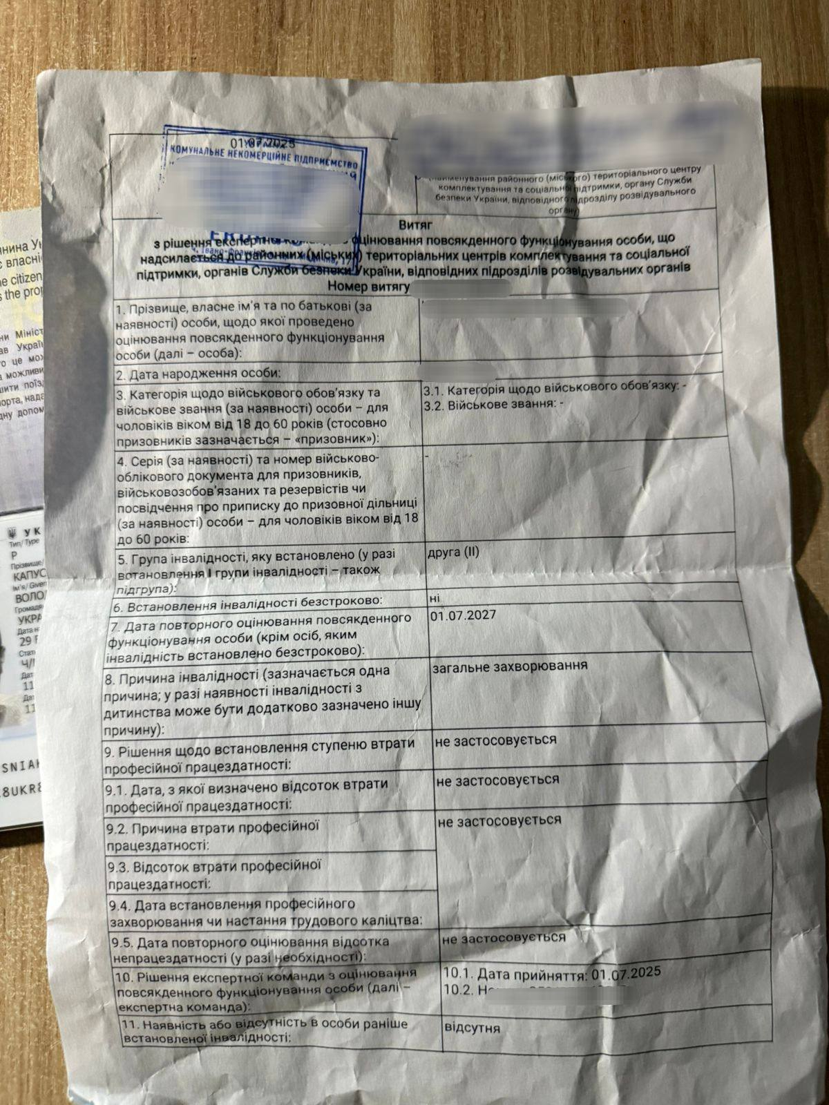 На момент одержання пенсійного посвідчення та під час зазначеного стаціонарного лікування він перебував за межами України. Також виявлено ще кілька ознак недійсності посвідчення та інших документів.