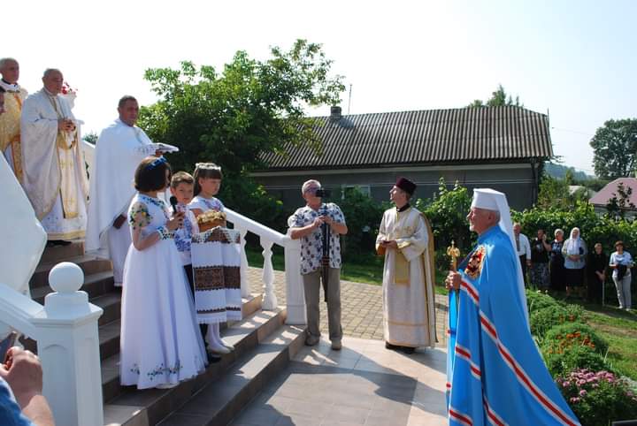 Діти вітали Митрополита хлібом-сіллю, а отець-парох Володимир Гаврилко запросив настоятеля очолити Архієрейську Божественну Літургію. Спершу Владика Володимир здійснив чин освячення нового храму та престолу.