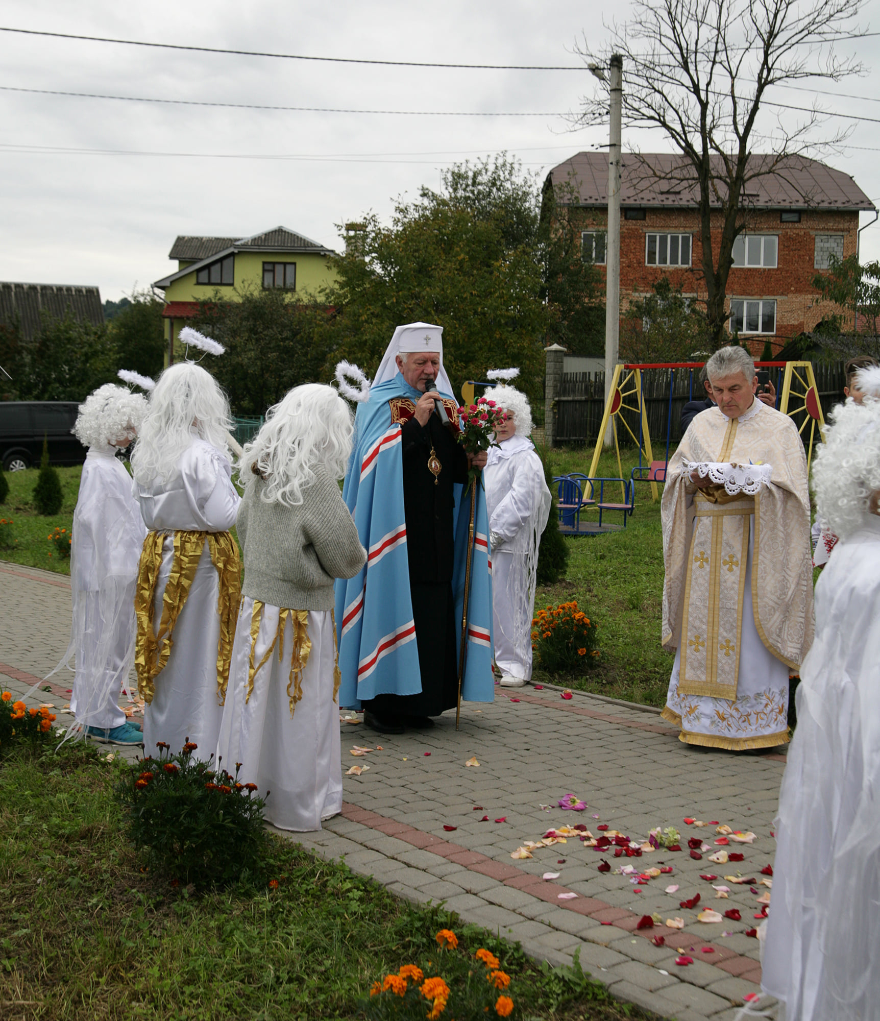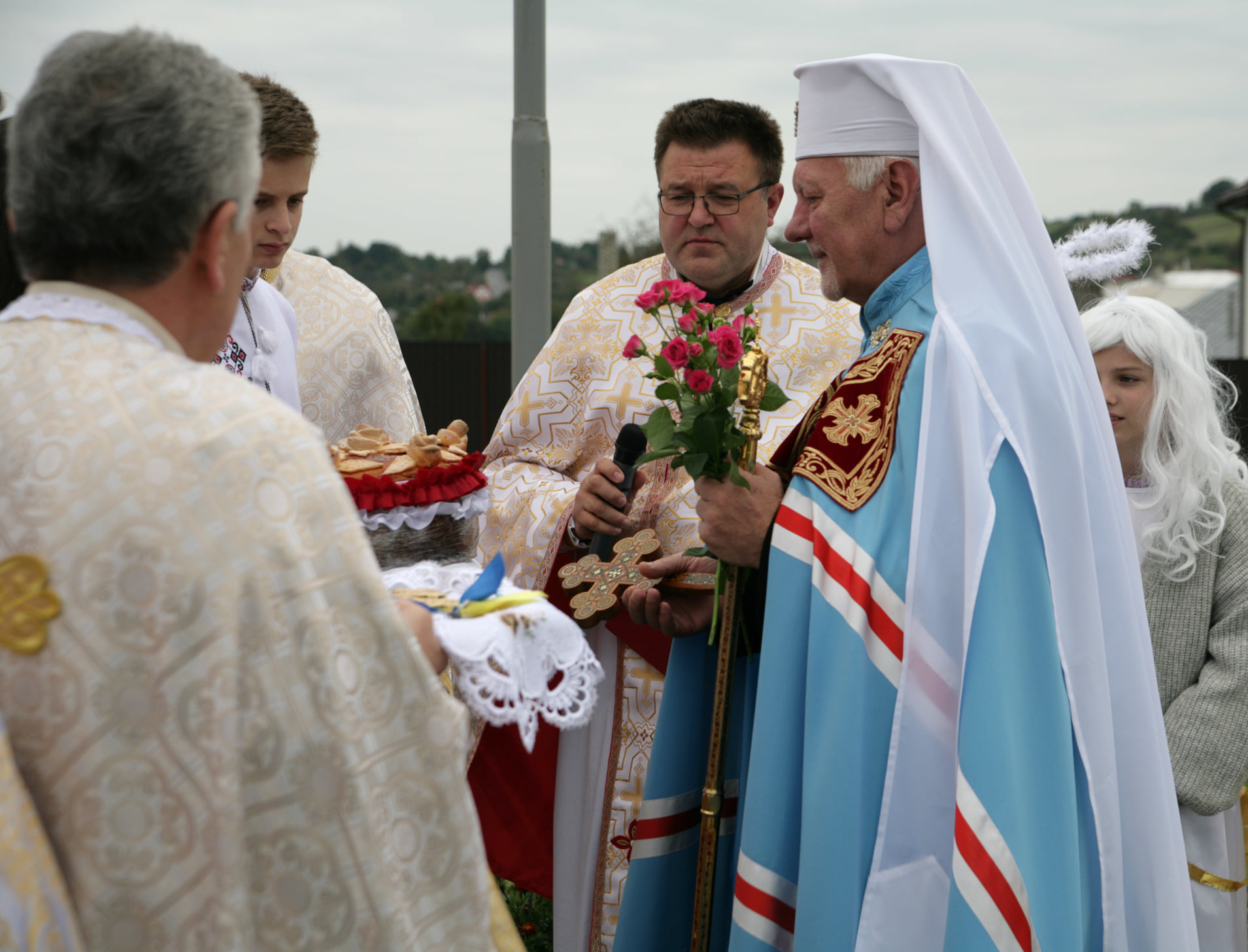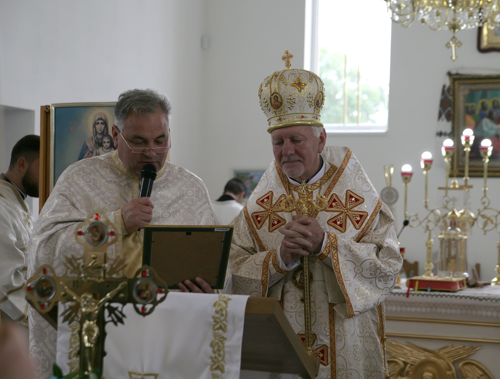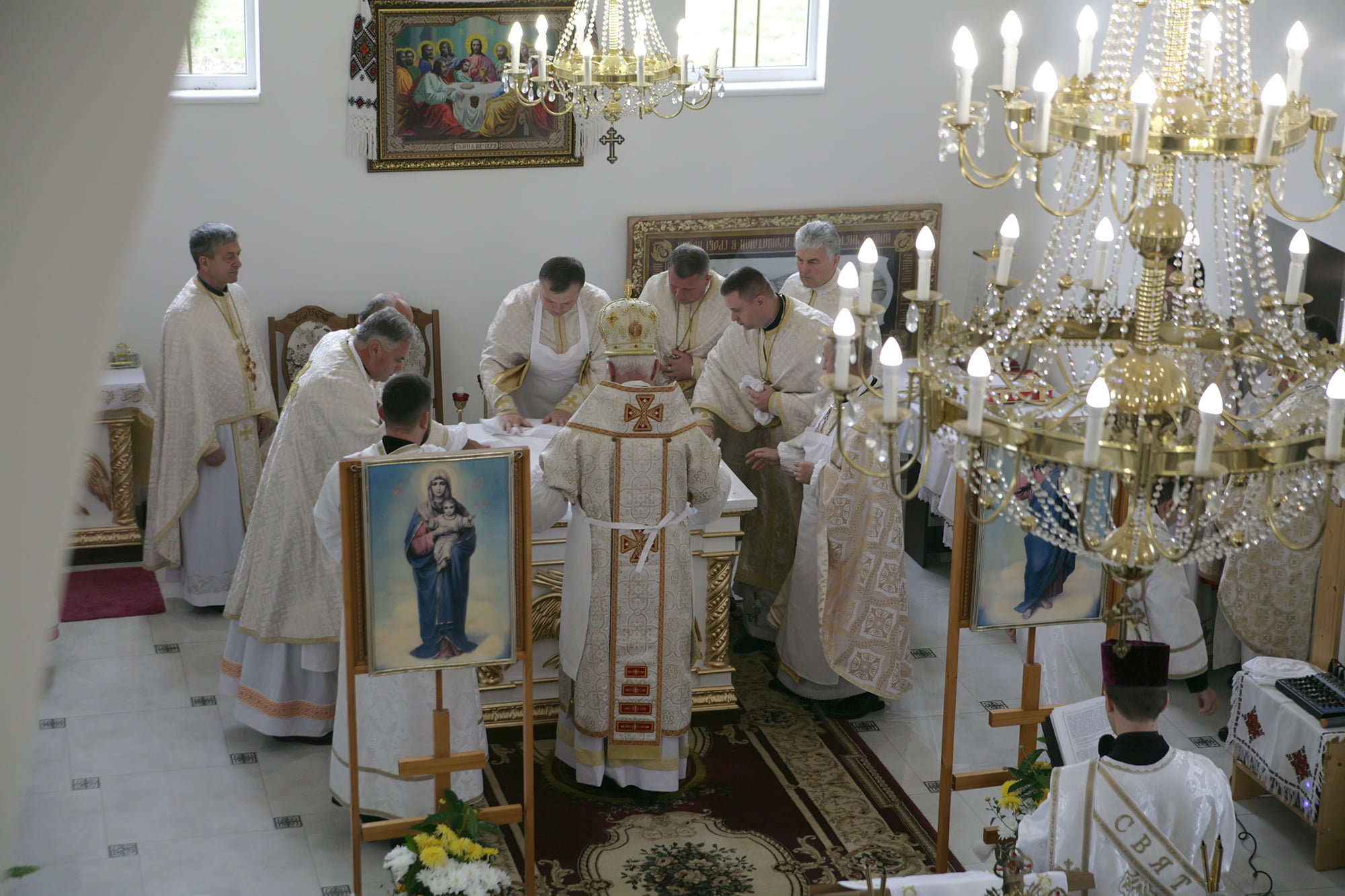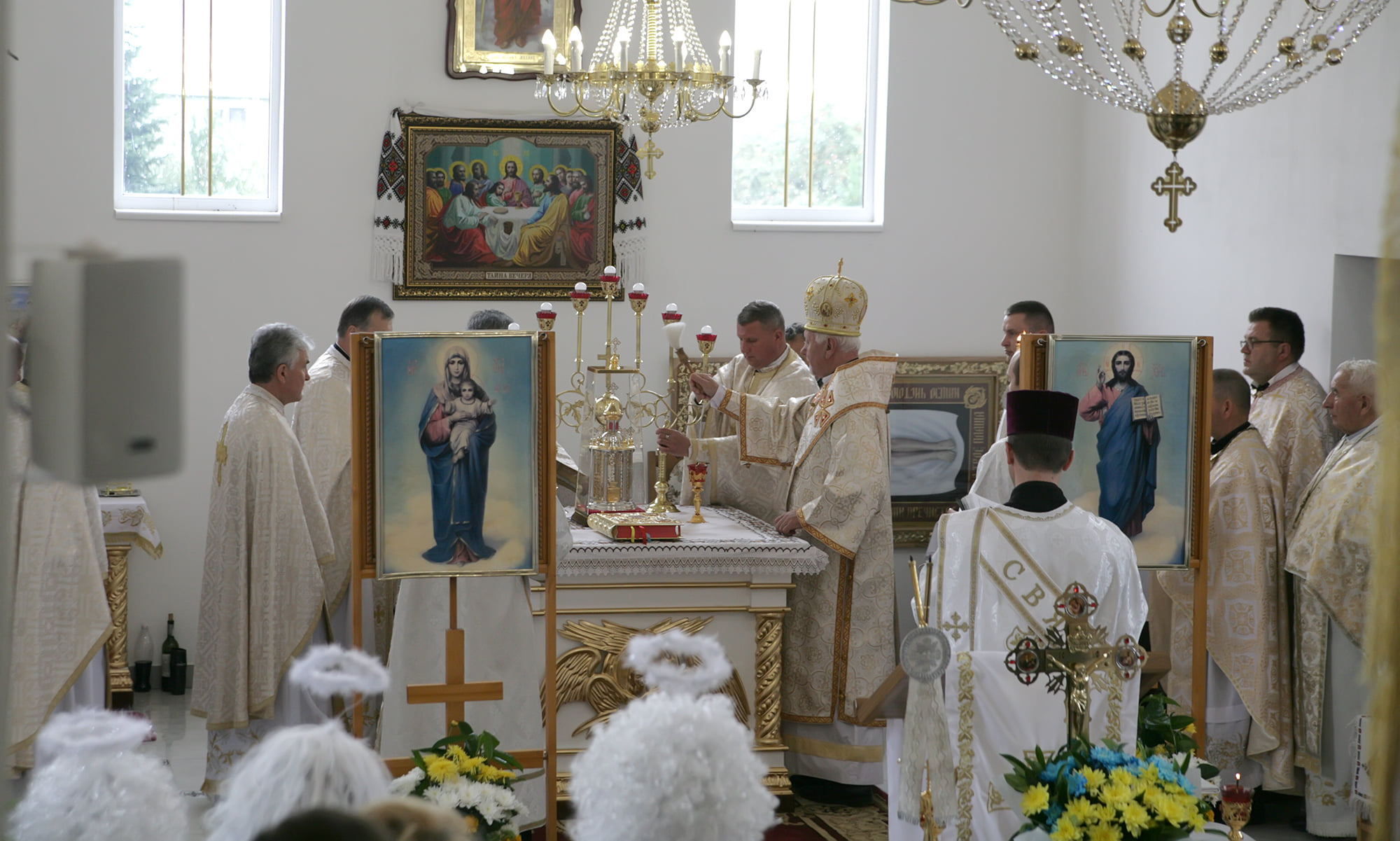 Хлібом-сіллю Владику зустрічали на подвір'ї святині діти, а отець-парох Василь Витвицький запросив предстоятеля очолити Архієрейську Божественну Літургію. Спершу Владика Володимир здійснив чин освячення нового храму та престолу.