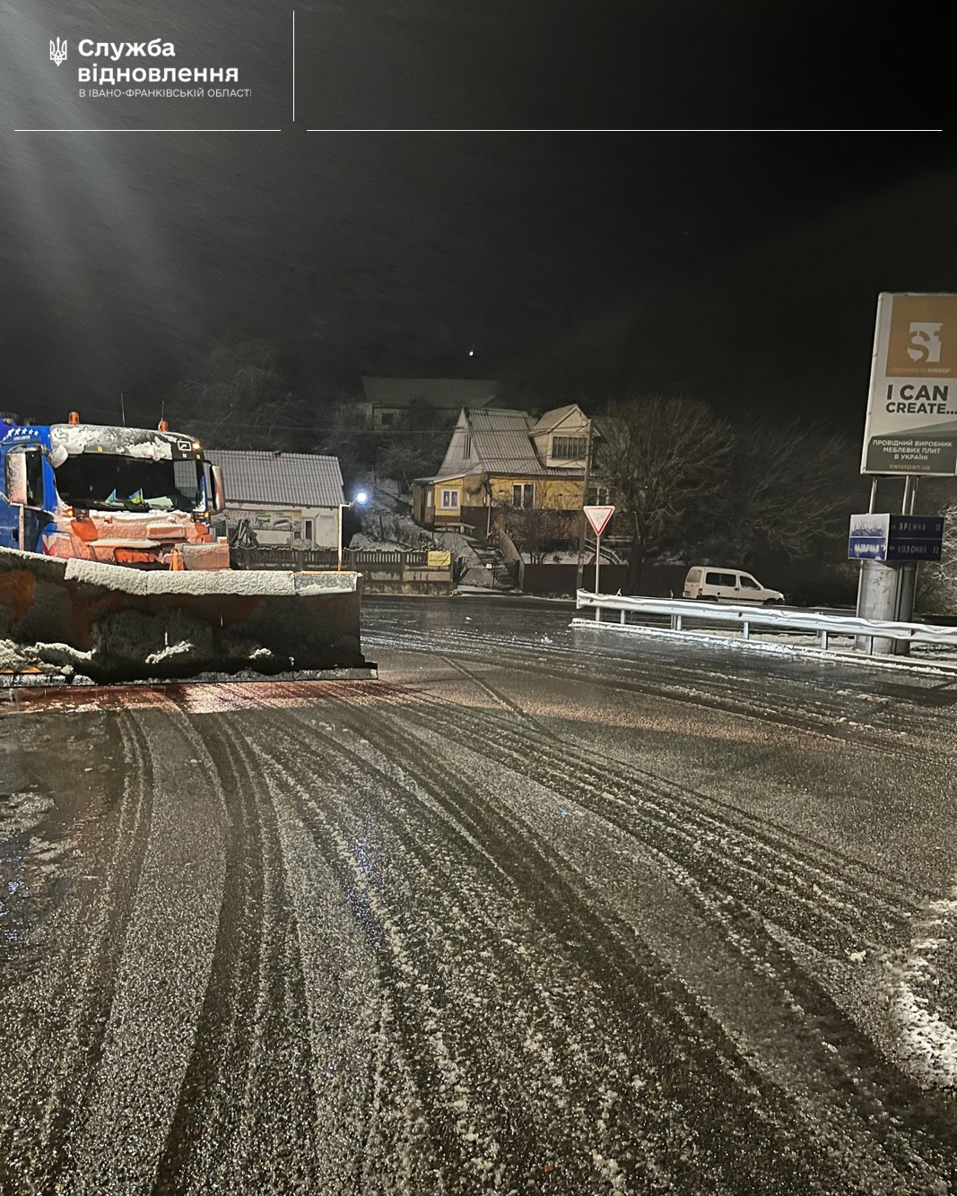 "Здійснюємо вирізування та подрібнення порослі на смузі відведення дороги Н-18 Івано-Франківськ — Тернопіль.Замінюємо пошкоджені після ДТП дорожні знаки.У межах капітального ремонту мосту у селі Стопчатів на дорозі Р-24 Татарів — Кам'янець-Подільський також наносимо дорожню розмітку", — йдеться у дописі.