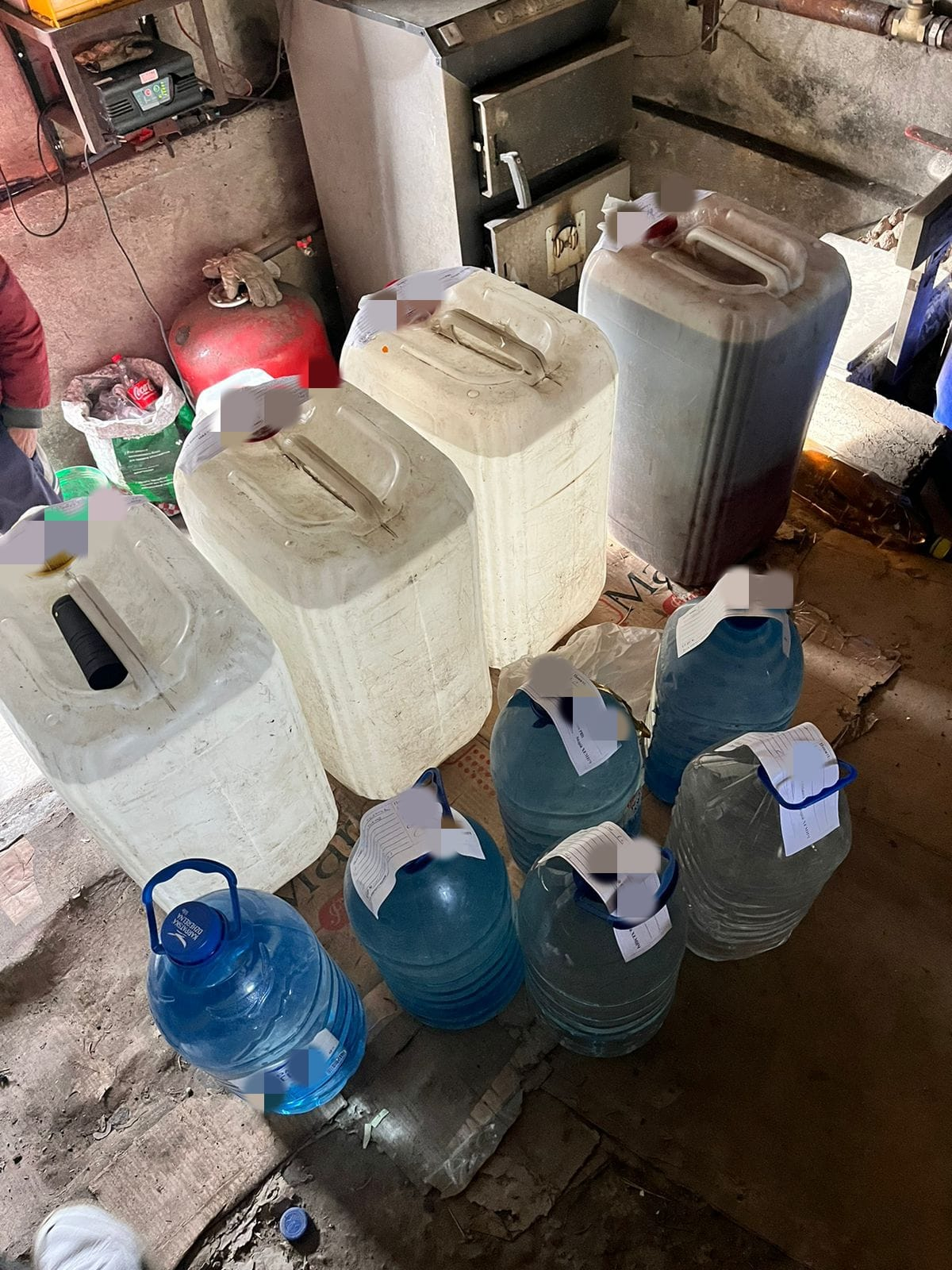 На Калущині під час обшуку в чоловіка виявили понад 400 літрів спирту та 210 пачок цигарок без акцизних марок (ФОТО)