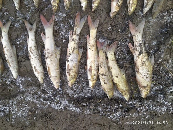 Обстеживши скидний канал, у водоймі виявили 55 екземплярів загиблої марени звичайної. Всі екземпляри риб без слідів механічного пошкодження (від використання заборонених знарядь лову) та без слідів від полювання на них рибоїдних птахів.