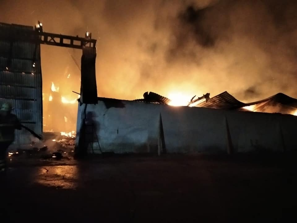 Як повідомляють рятувальники, горів склад з зерном соняшника та сої (металевий ангар) на площі 350 м2 на території сільськогосподарського підприємства ТОВ «Компанія «Агро-дует».