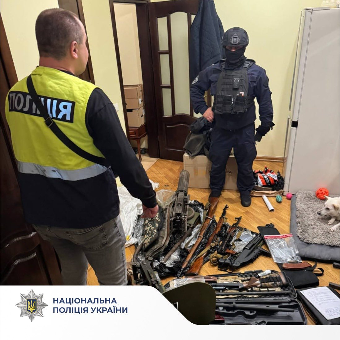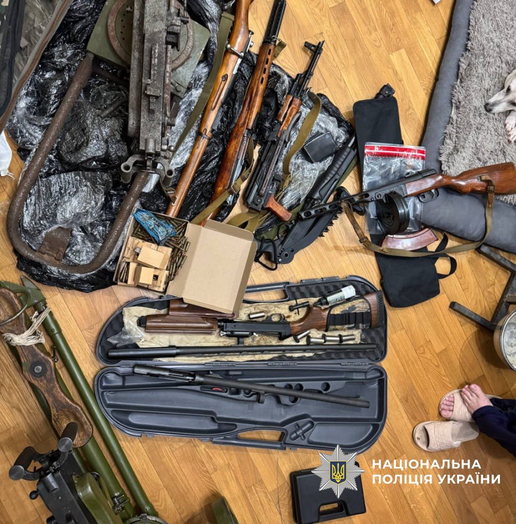 Під час санкціонованого обшуку правоохоронці виявили та вилучили: кулемет, нарізні гвинтівки, нарізний карабін, мисливську нарізну рушницю, набої військового зразка та травматичний пістолет.