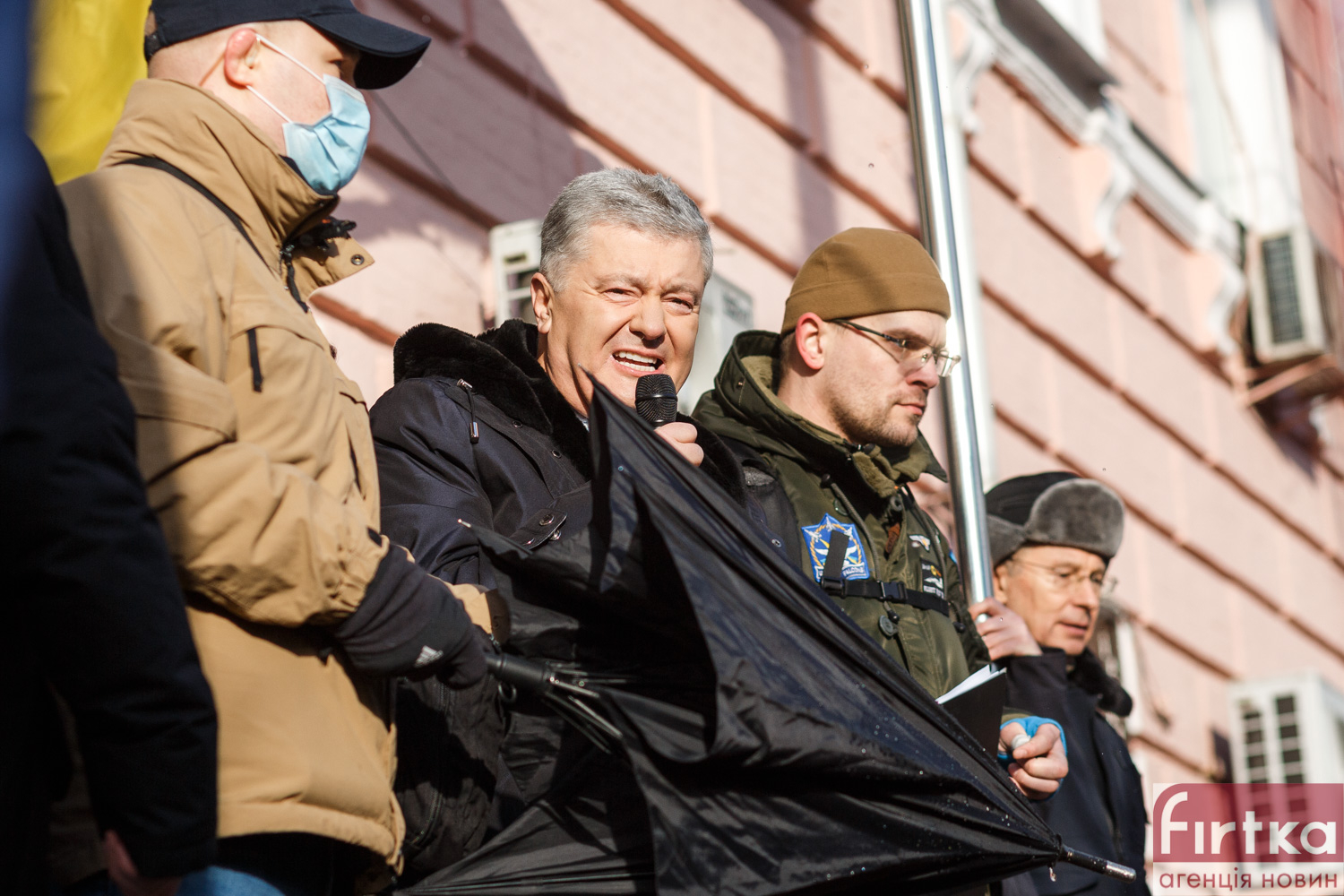 Виступаючи перед мітингувальниками, лідер «ЄС» порівняв нинішню ситуацію в Україні з ситуацію в країні на початку Майдану. Зазначив, що насправді порушення проти нього кримінального провадження пов’язане з його досягненнями, як-от Томос про автокефалію для Православної церкви України, контрнаступ на Донбасі, наказ про прохід українських катерів через Керченську протоку тощо.