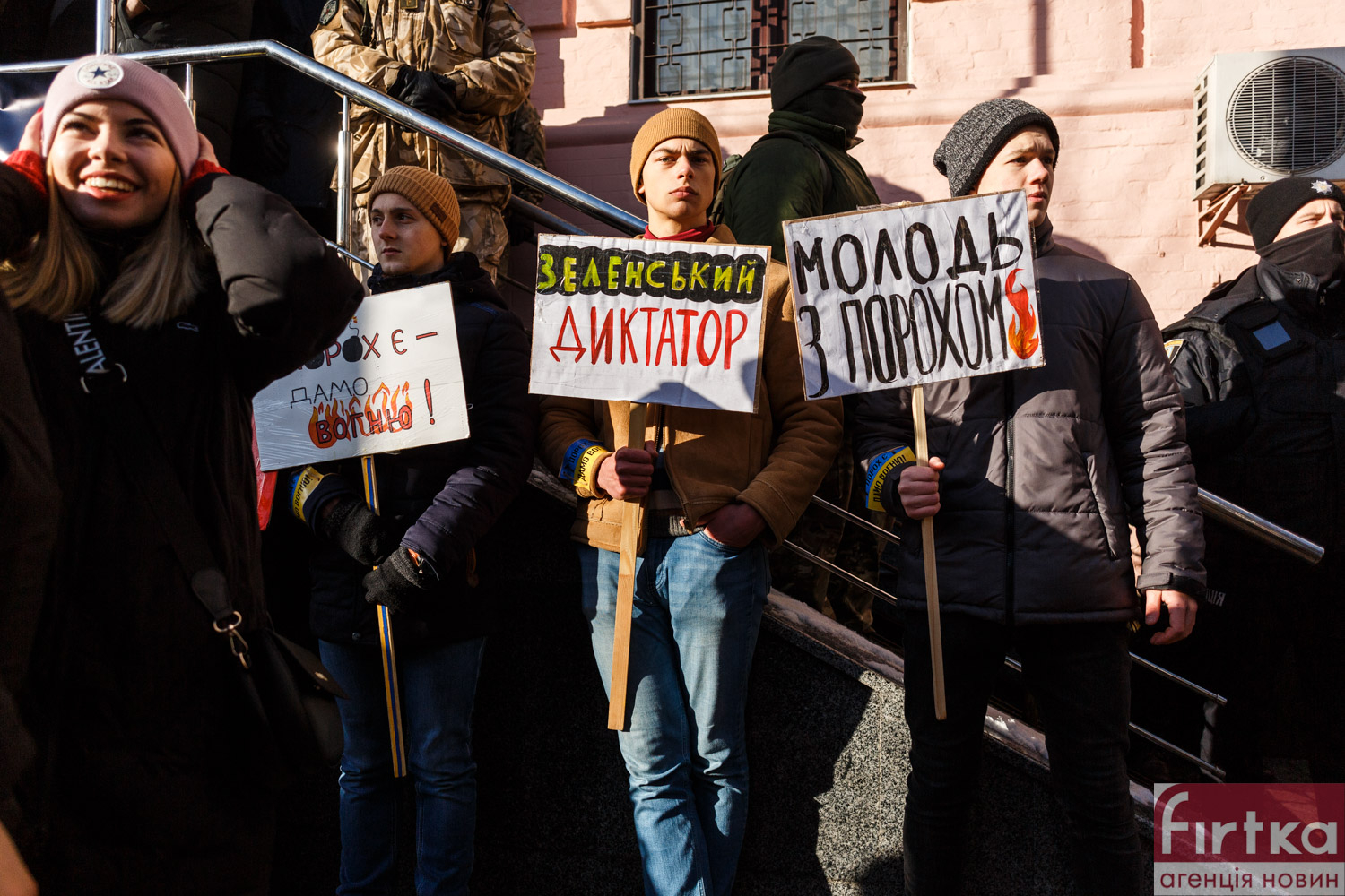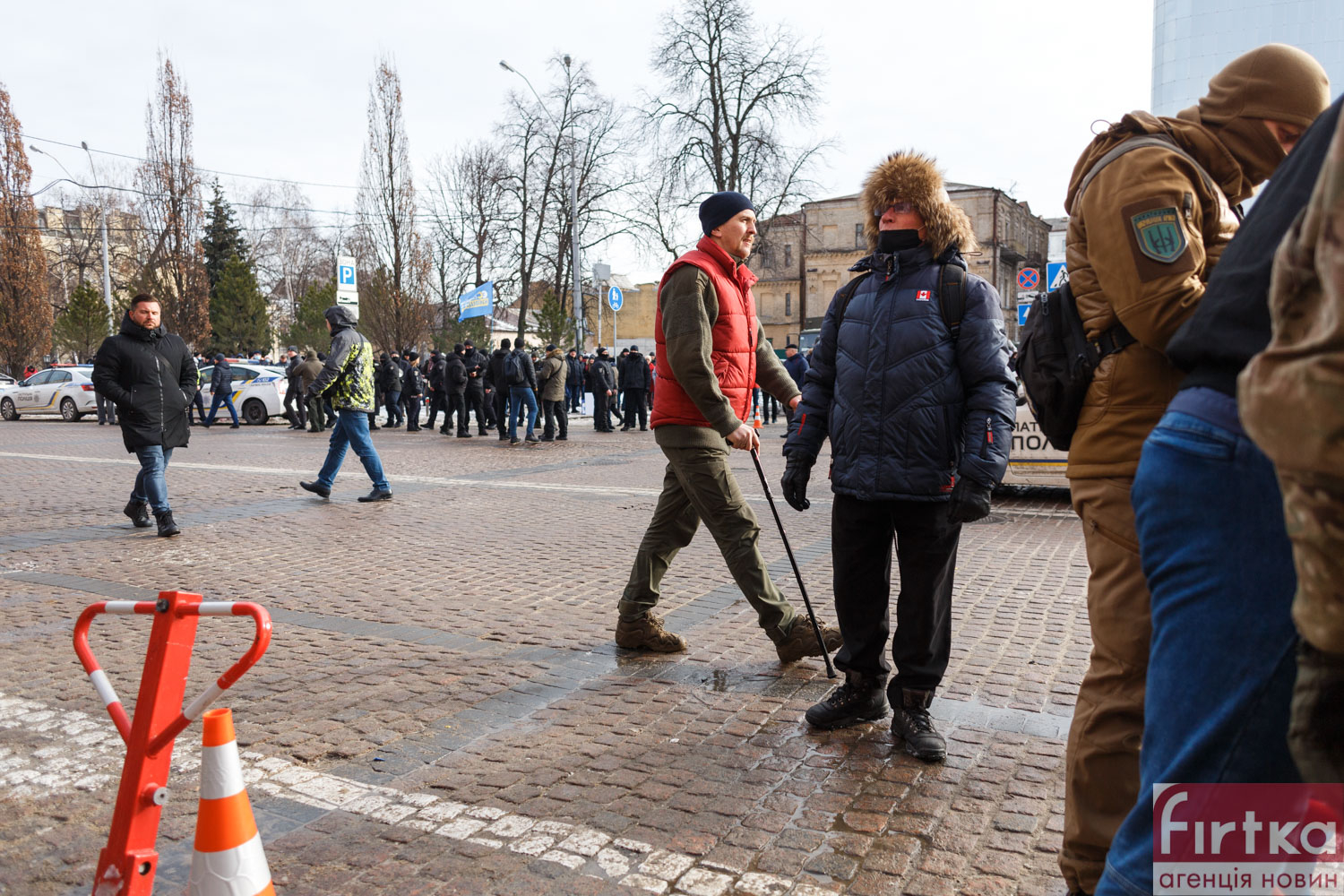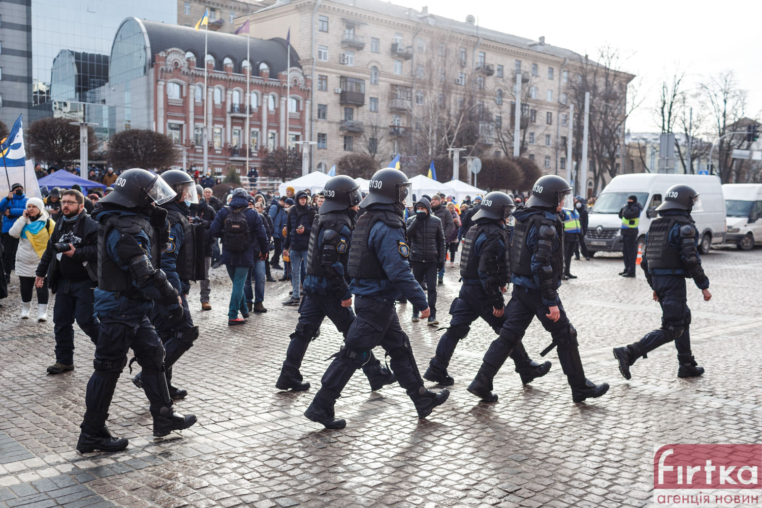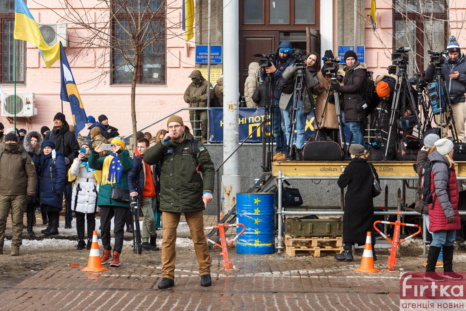 Не обійшлося без штовханини. Учасників протестів обурило намагання правоохоронців не допустити встановлення на площі перед судом металевих бочок для обігріву та пронести на площу автомобільні шини.