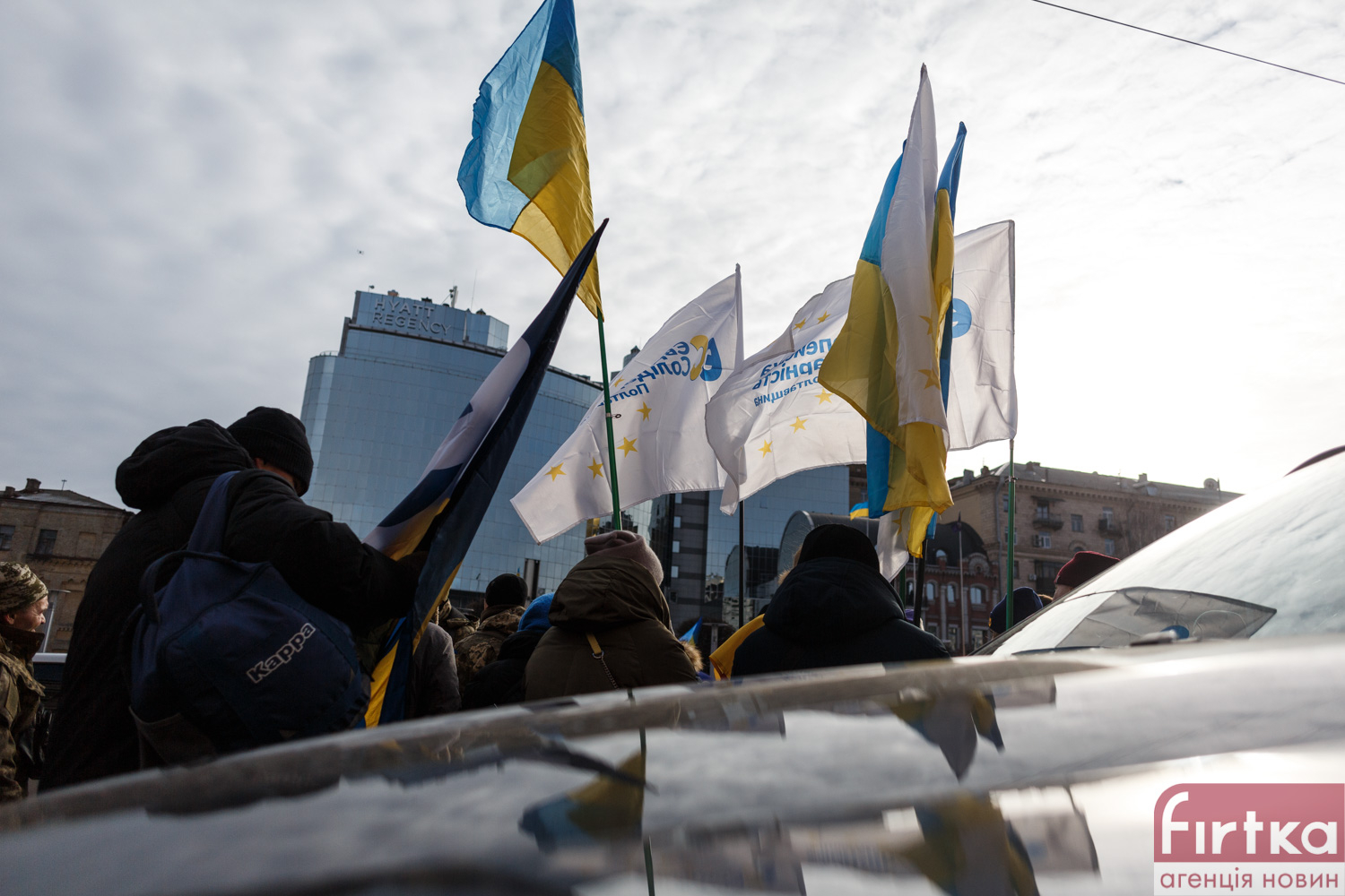 Після виходу лідера «ЄС» до мітингувальників натовп учасників протесту рушив на вулицю Банкову, до Офісу Президента.