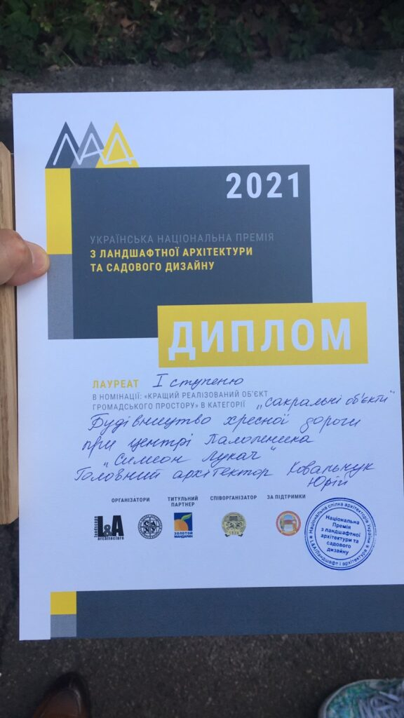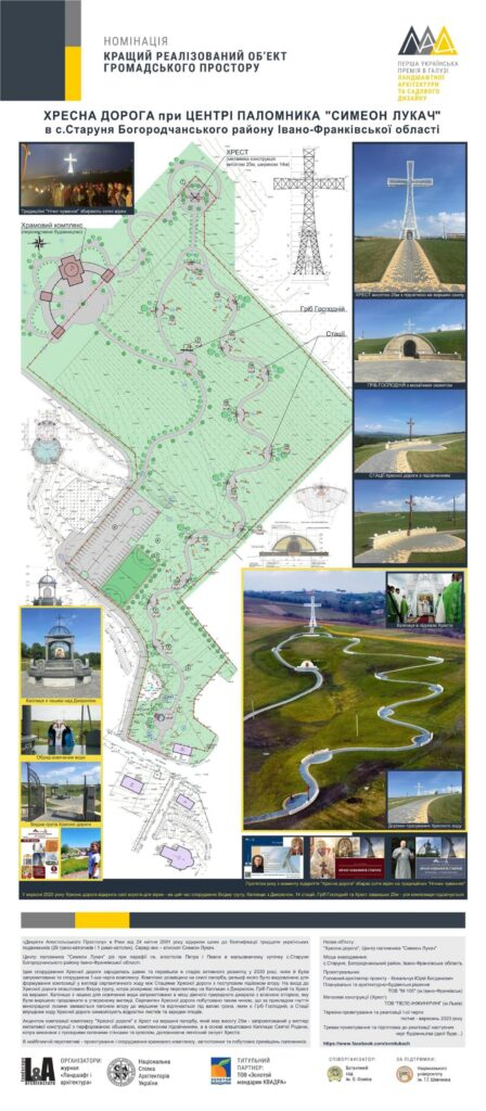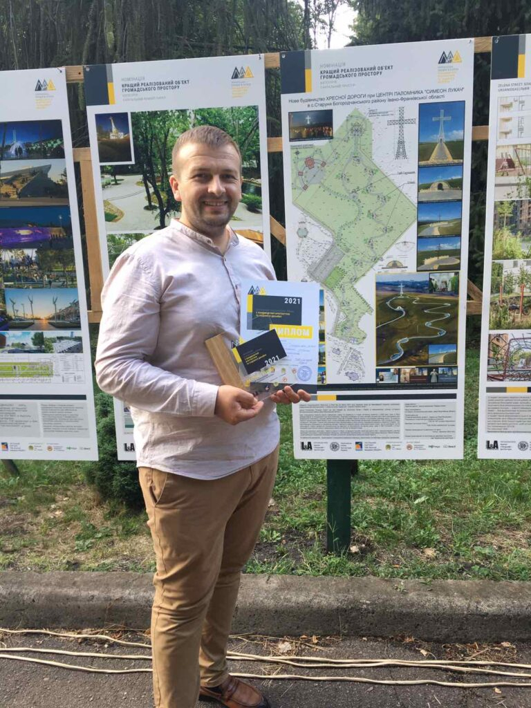 До участі в премії архітектор Юрій Ковальчук представив проєкт «Хресна дорога в Центрі паломника «Симеон Лукач», який і став Лауреатом 1-го ступеня у номінації «Кращий реалізований об’єкт громадського простору» (категорія «Сакральний простір»).