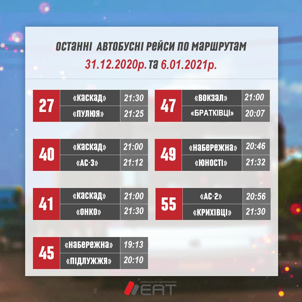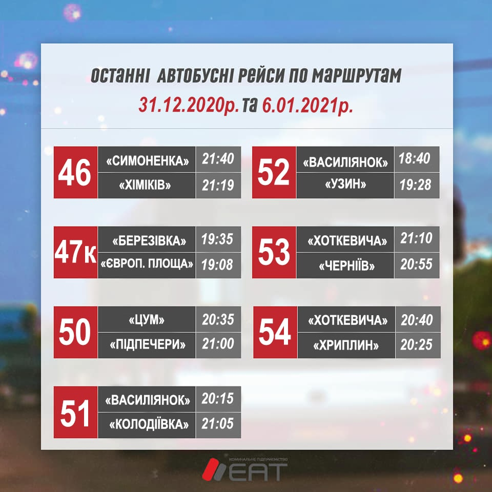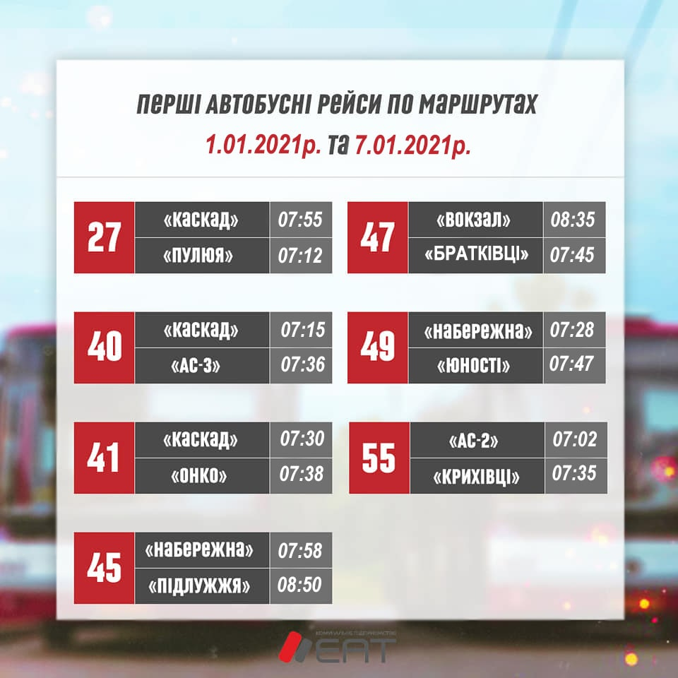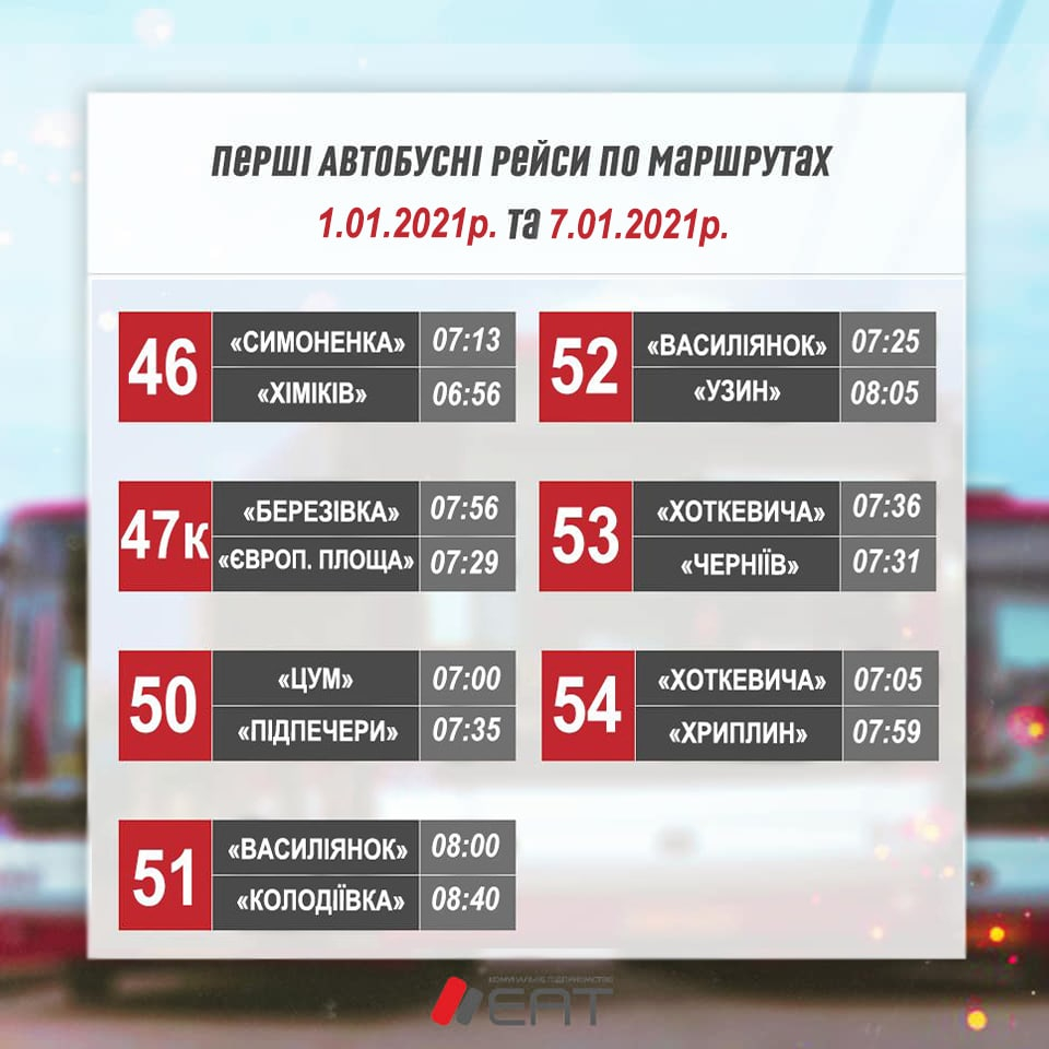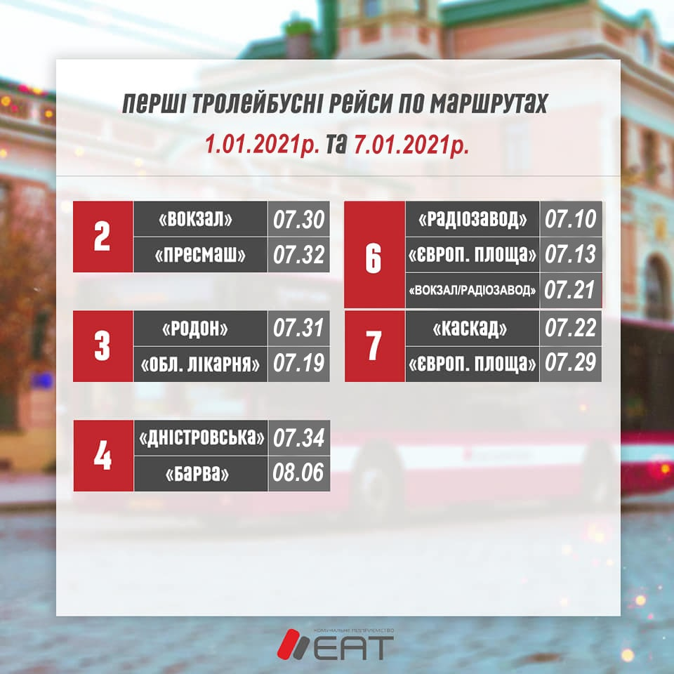 А 1 та 7 січня виїзд транспорту відбуватиметься дещо пізніше.