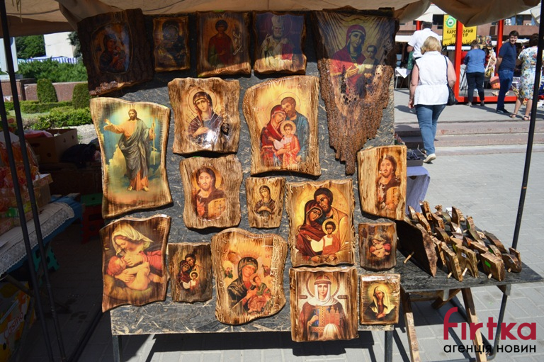 На вернісажі можна придбати вишиті сорочки, сувеніри, глиняний посуд та органічні засоби по догляду за тілом та ікони. Крім того, ковбаси, сири, вина та медовуху. Також на площі можна поїсти смачного м'яса та придбати саджанці винограду.