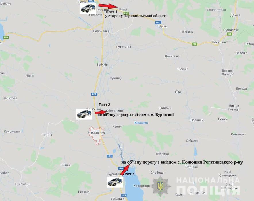 Правоохоронці Івано-Франківщини поставили чотири пости (у мікрорайоні Пасічна, в Бурштині, Конюшках і Рогатині), де можливо об’їхати заблоковану дорогу.