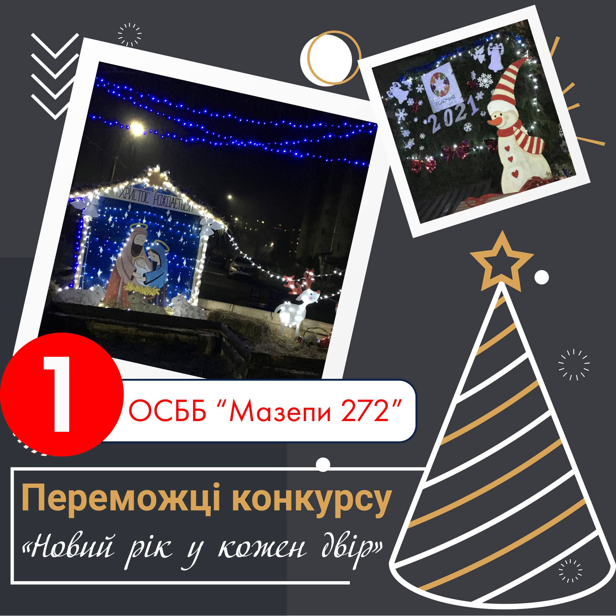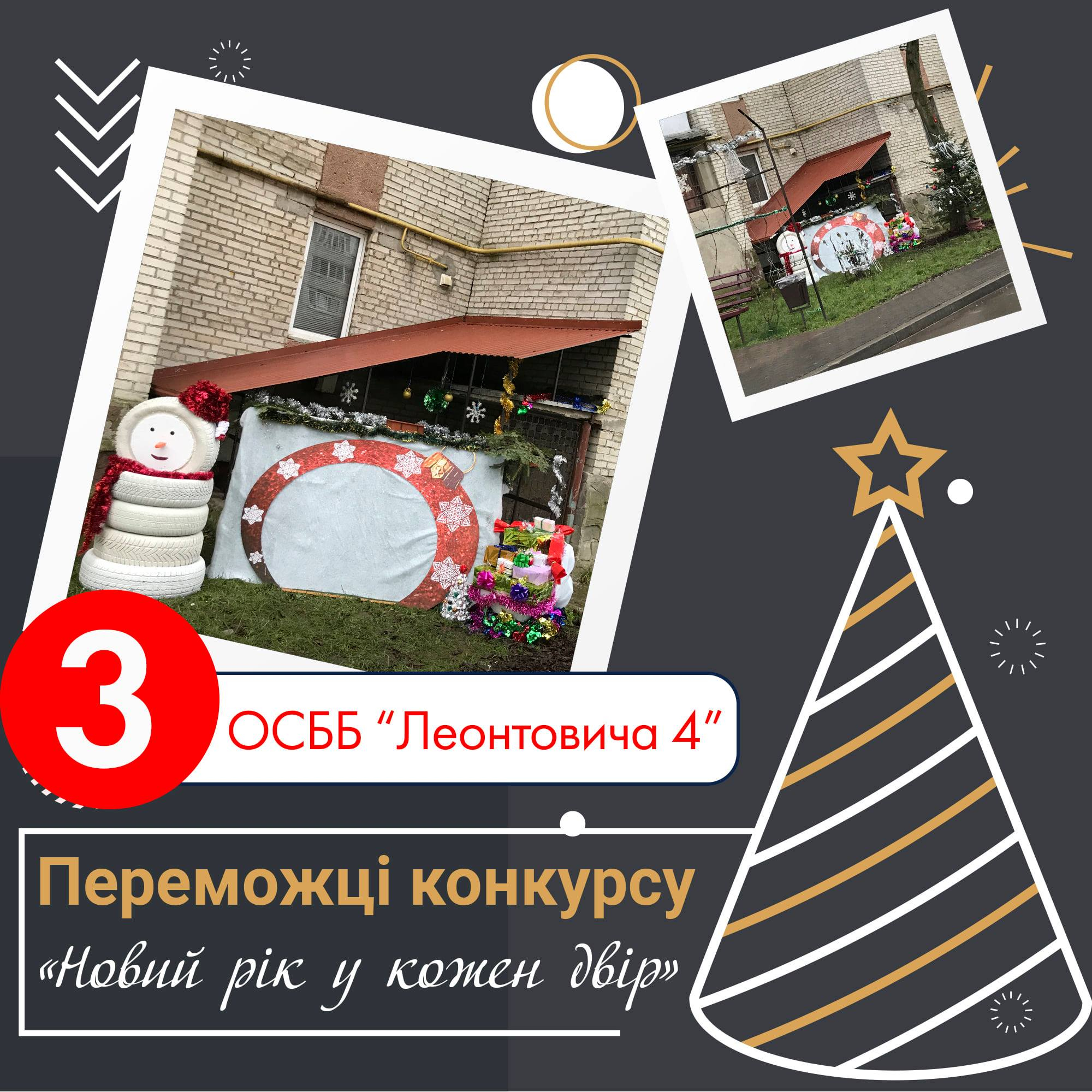 У конкурсі "Новий рік у кожен двір" взяло участь 3 ОСББ, які дуже постаралися, щоб їхні двори були казковими та святковими. Результати голосування наступні:
