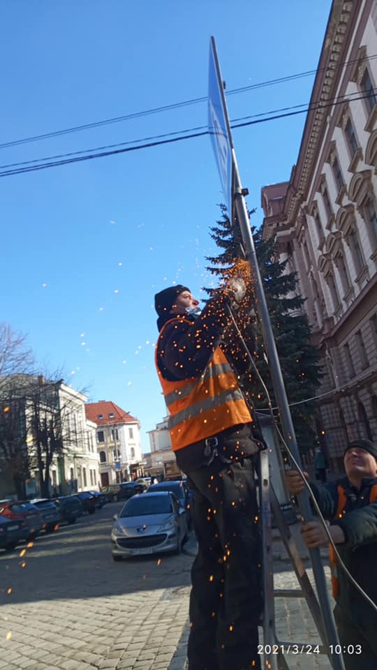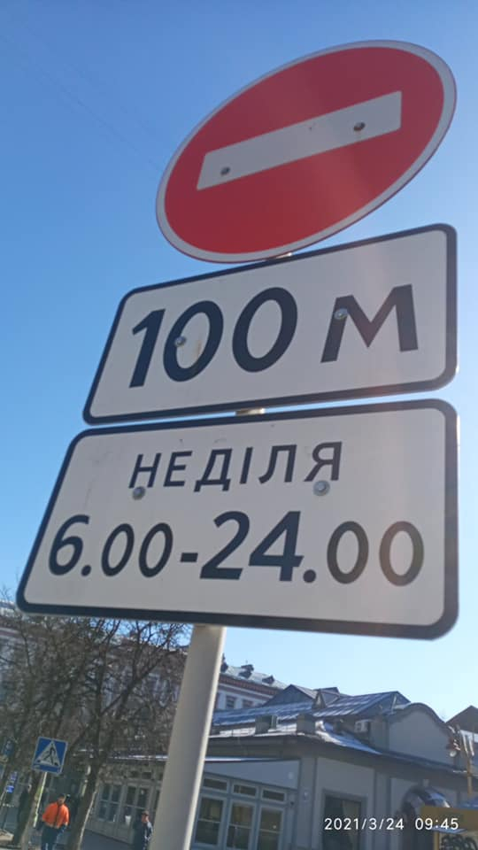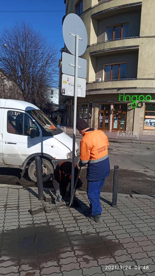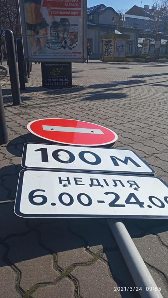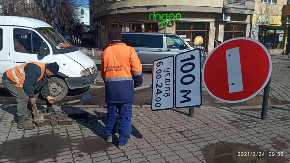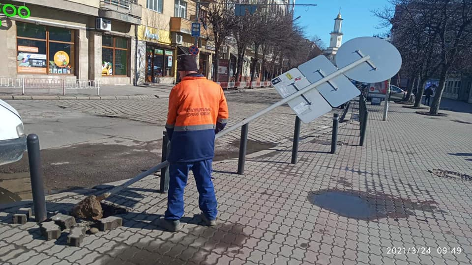 Вчора, 24 березня, на виконання рішення Комісії з безпеки дорожнього руху працівники КП "Муніципальна дорожня компанія" демонтували дорожні знаки 3.21 та додаткові таблиці до них на вулиці Галицькій.