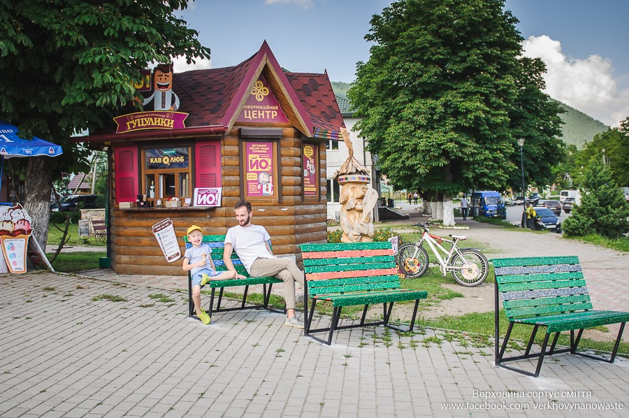"Сортування і переробка відходів в дії! Всі охочі подивитися на ці чудові дизайнерські лавочки та насолодитися краєвидом гір, що відкривається з центру Верховини — ласкаво просимо!", - йдеться у дописі.