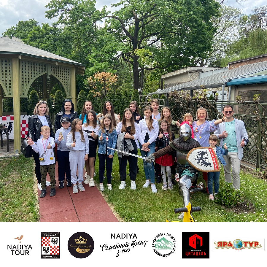 Після екскурсії-квесту на дитячому майданчику ресторану “Надія” гостей розважав пантомім – середньовічний лицар, який продемонстрував вправне володіння мечем і викликав хвилю захоплення серед дітей.
