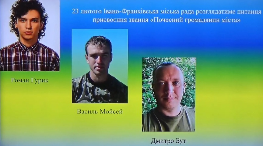 «23 лютого планується, що Івано-Франківська міська рада розгляне питання про присвоєння звання «Почесний громадянин міста» героям Небесної сотні Роману Гурику, Василю Мойсею та Дмитрові Буту.