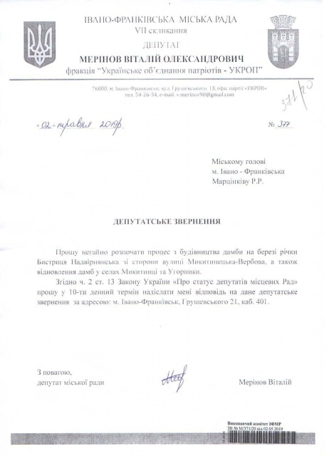 У своєму відеозверненні він наголосив на необхідності відновлення дамб у селах Микитинці та Угорники та будівництва дамби зі сторони вулиці Вербова.