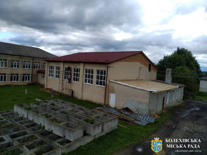 Минулого тижня завершили роботи з перекриття даху й Болехівської ЗОШ №2, зокрема на покрівлі частково замінили азбестовий шифер на безазбестовий, розчистили водостічну систему, демонтували оглядові вікна з конструкції даху та відновили гребінь даху.