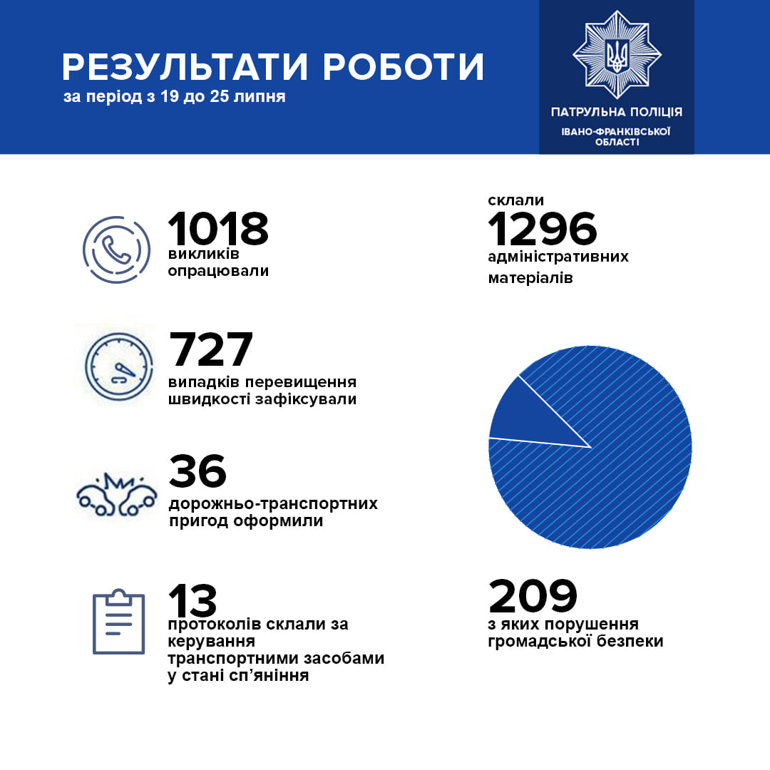 В період з 19 до 25 липня патрульна поліція отримала 1 018 викликів, інформує Фіртка.